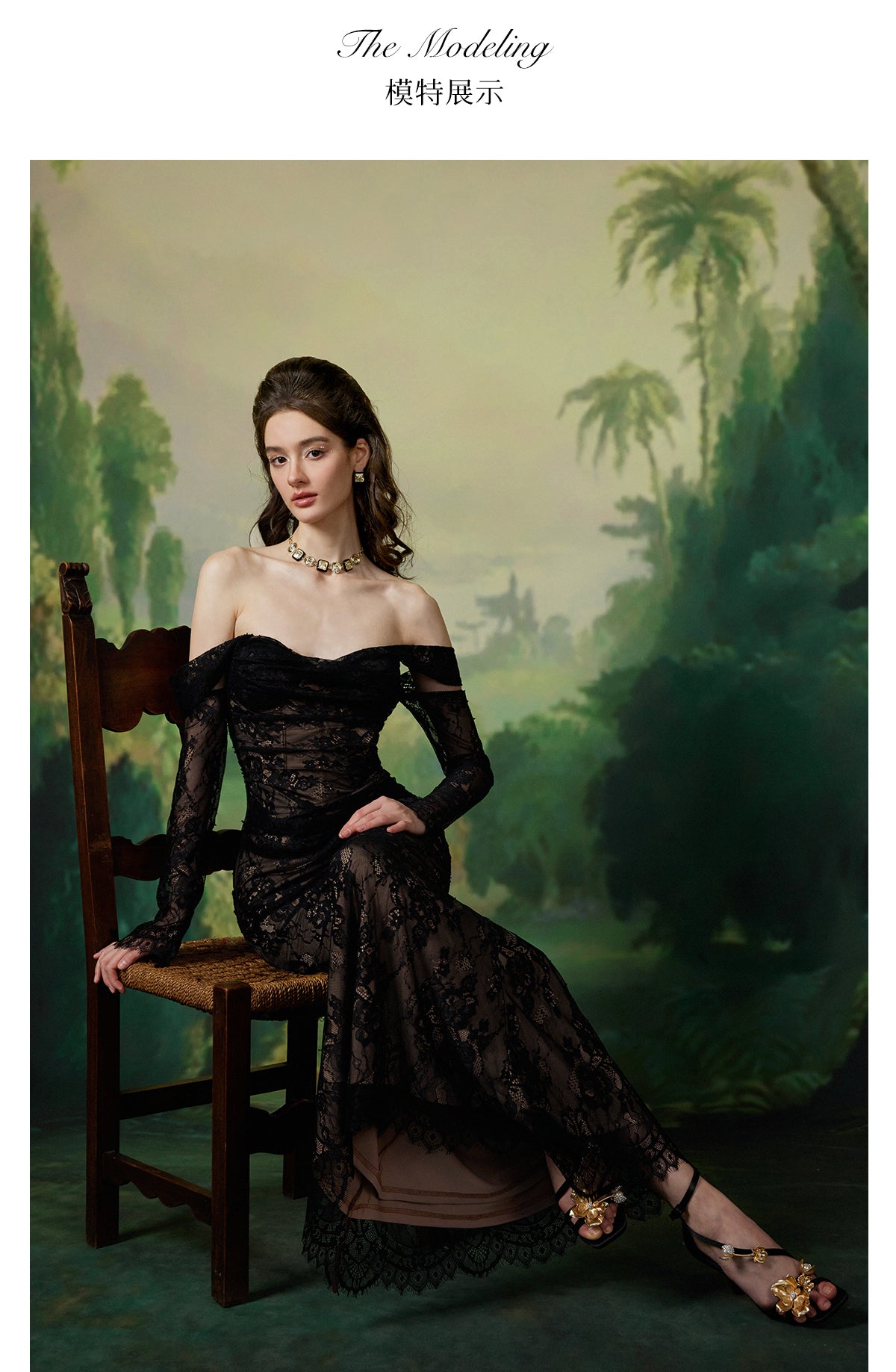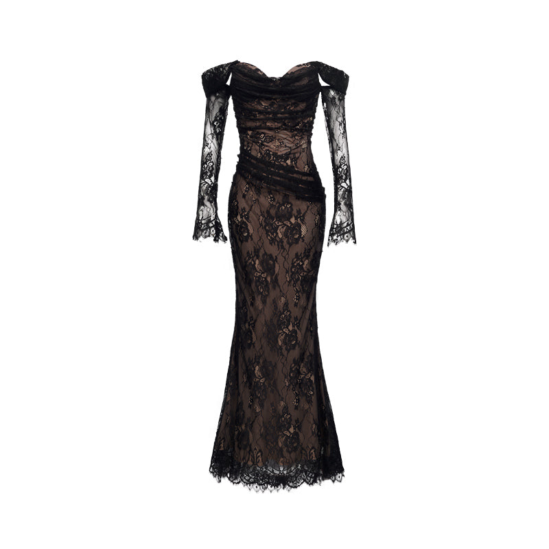 Sheer Luck Ariel Floral Lace Mermaid Maxi Dress Black