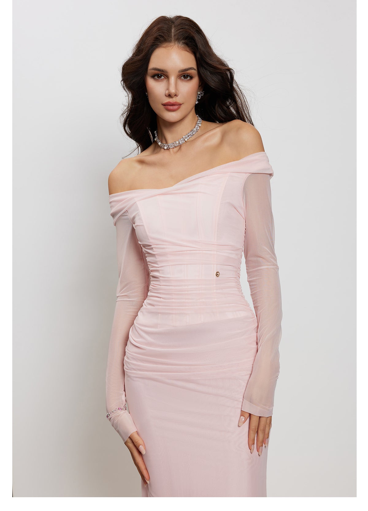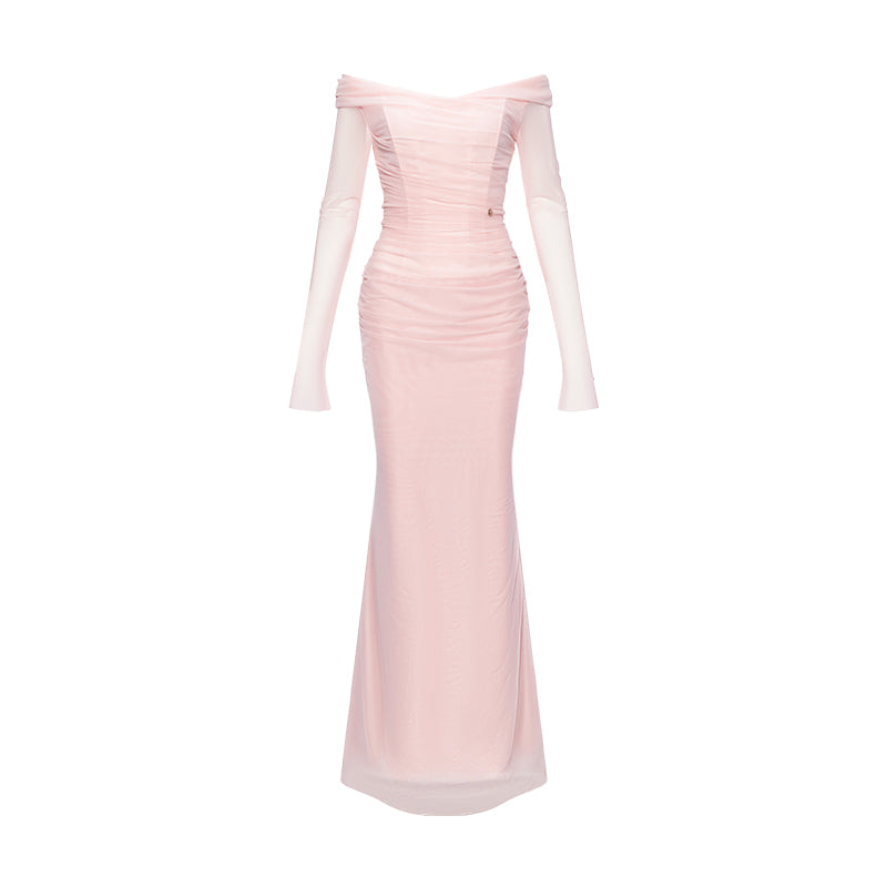 Crow Crew Off-Shoulder Sheer Corset Midi Dress Dusty Pink