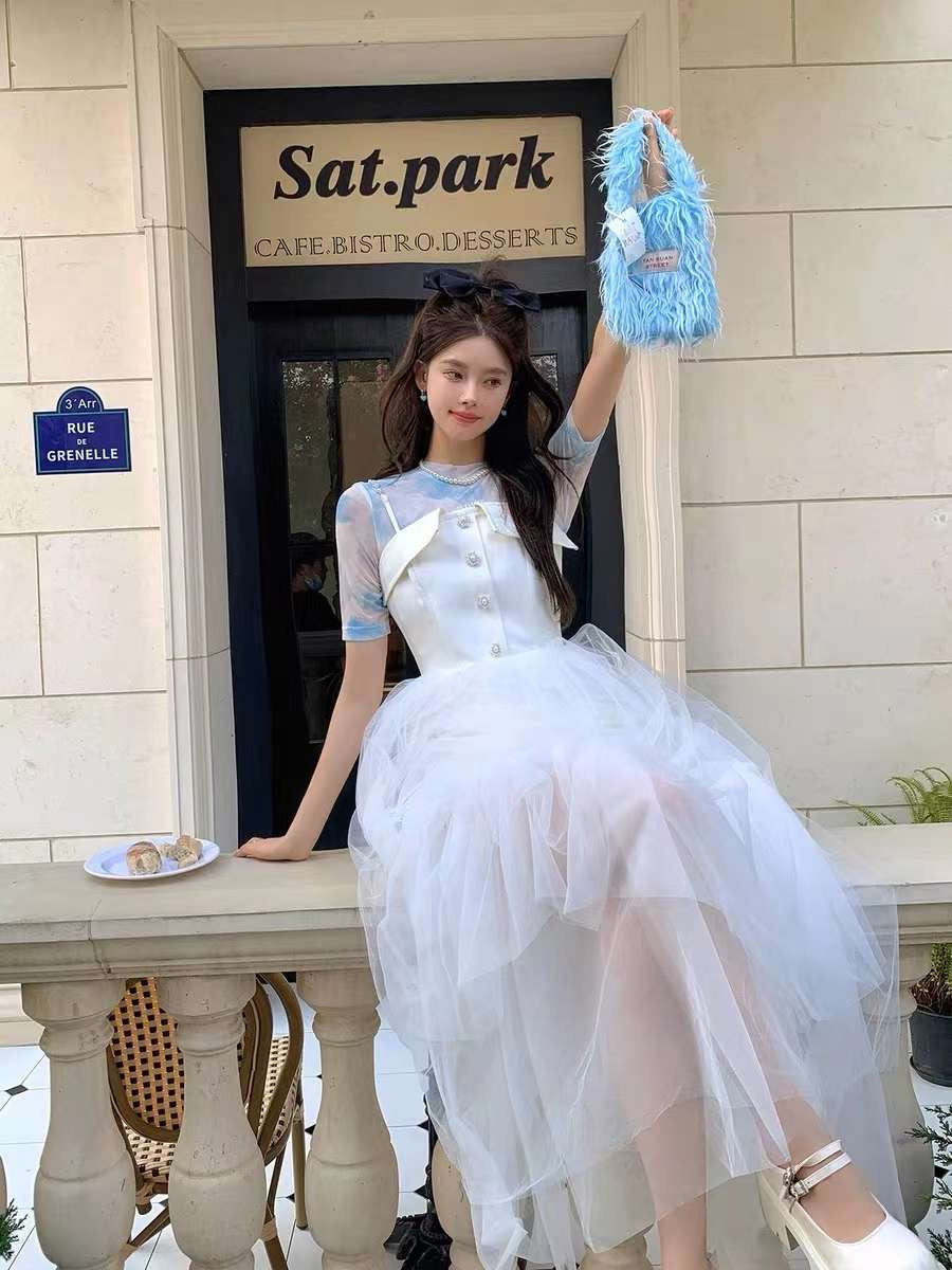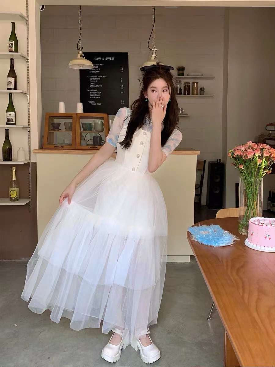 June Eleven White Corset-Style Sheer Tulle Dress