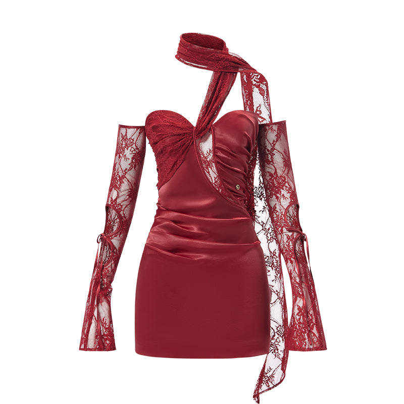 Sheer Luck Monaco Lace Trim Satin Mini Dress - Red