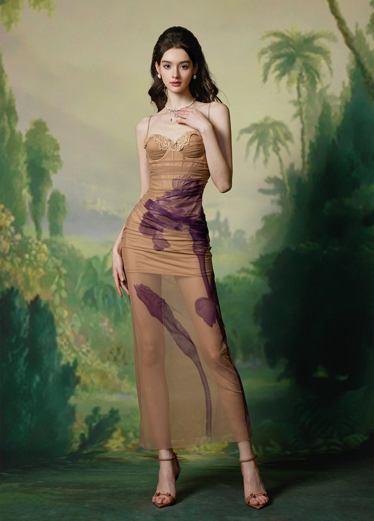 Sheer Luck Iris Sheer Maxi Dress Cinnamon Brown