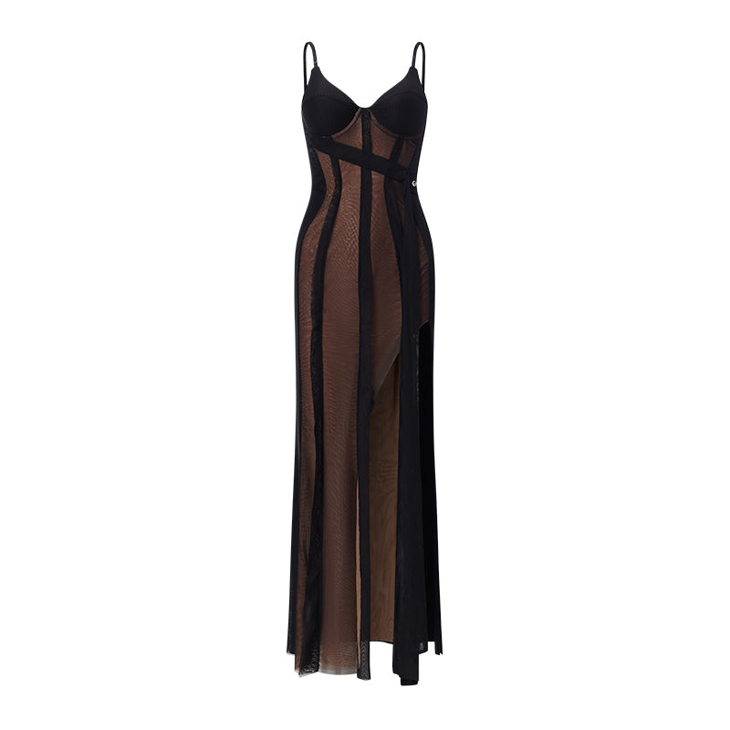 Sheer Luck Nora Mesh Corset Maxi Dress Black