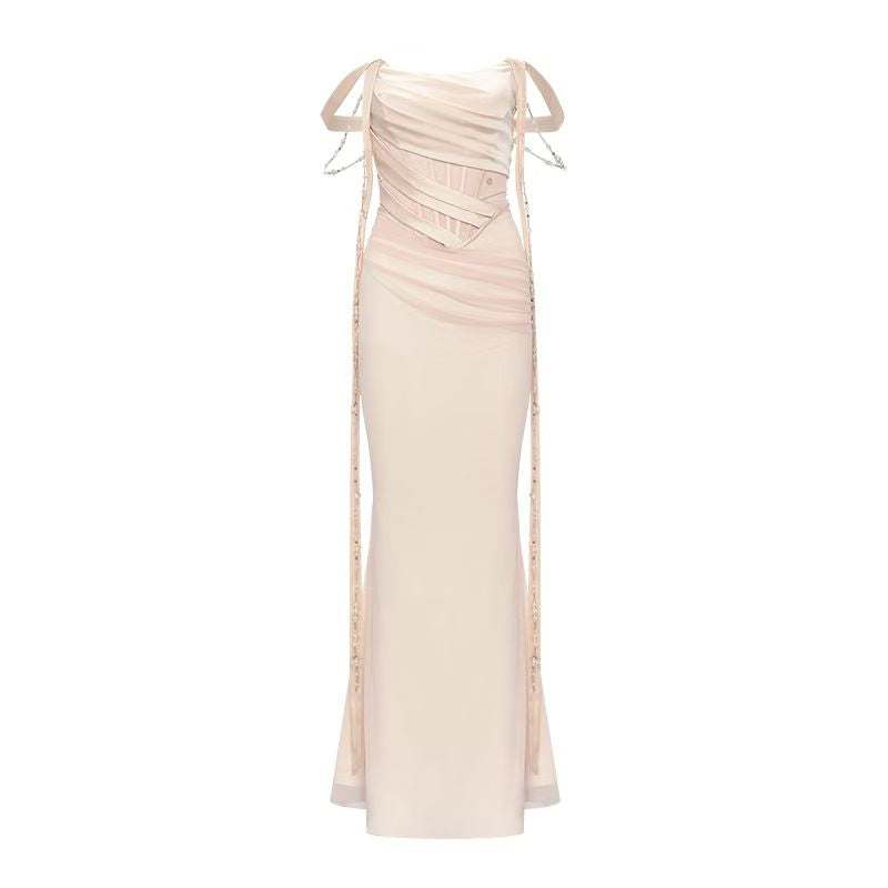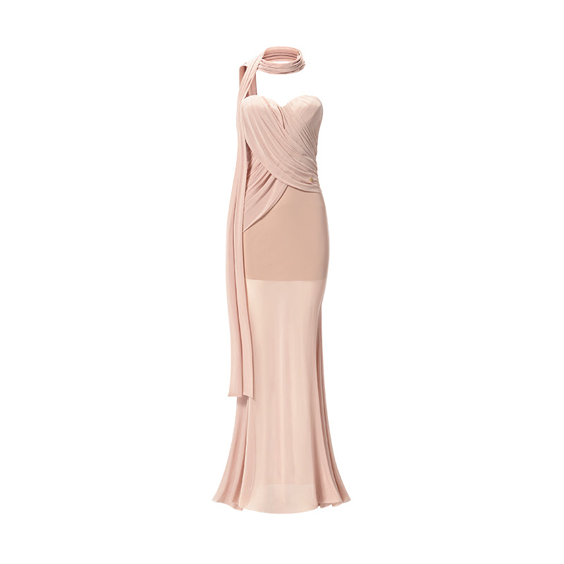 Sheer Luck Kira Draped Midi Dress - Beige