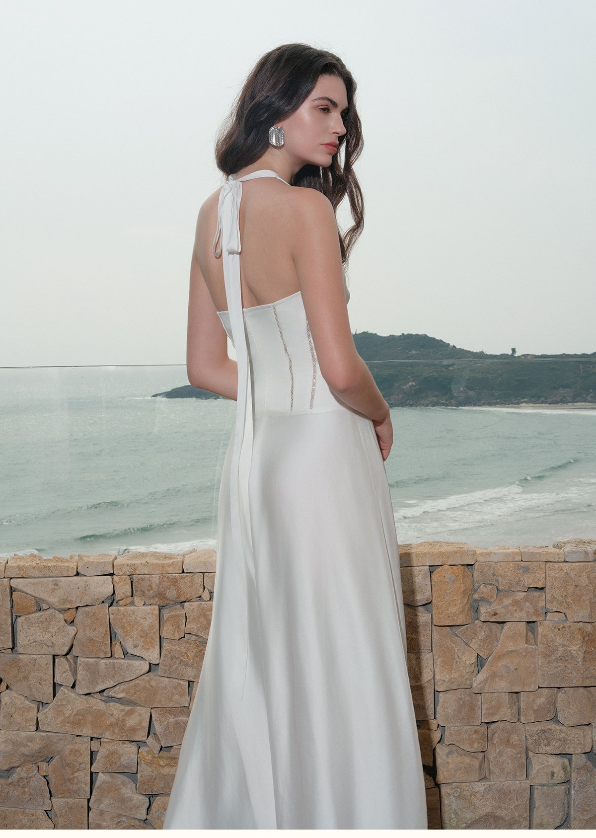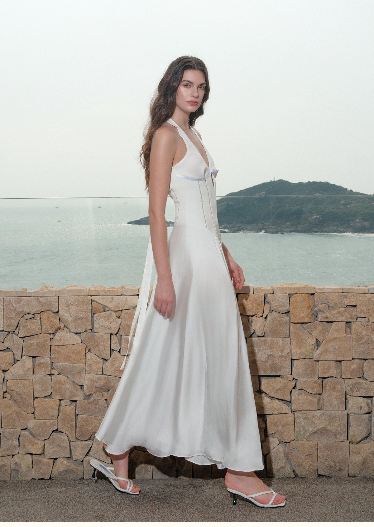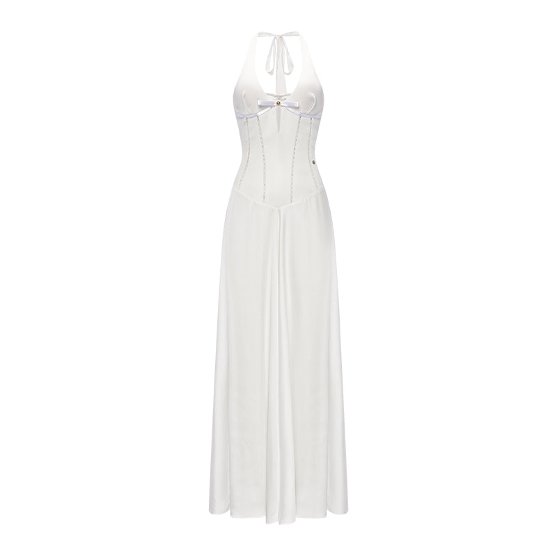 Sheer Luck Tasman French V-Neck Hollow-Out Halter Midi Dress White