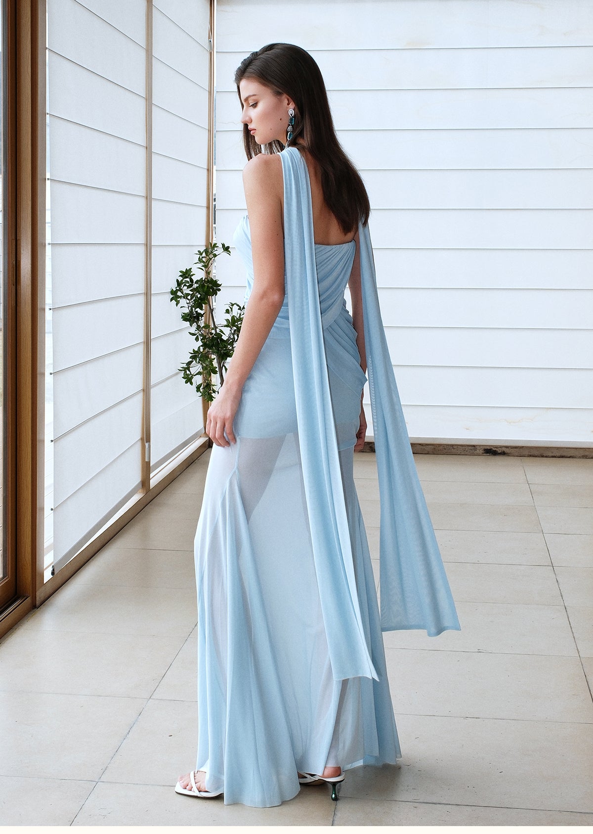 Sheer Luck Kira Draped Midi Dress - Ice Blue