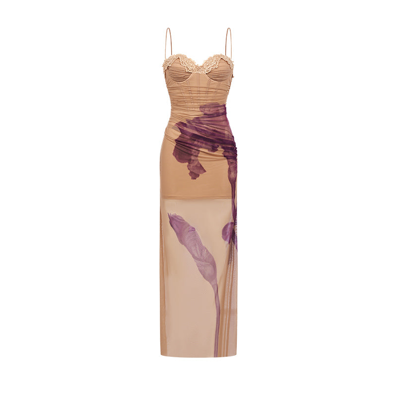 Sheer Luck Floral Bloom Mesh Corset Maxi Dress - Red