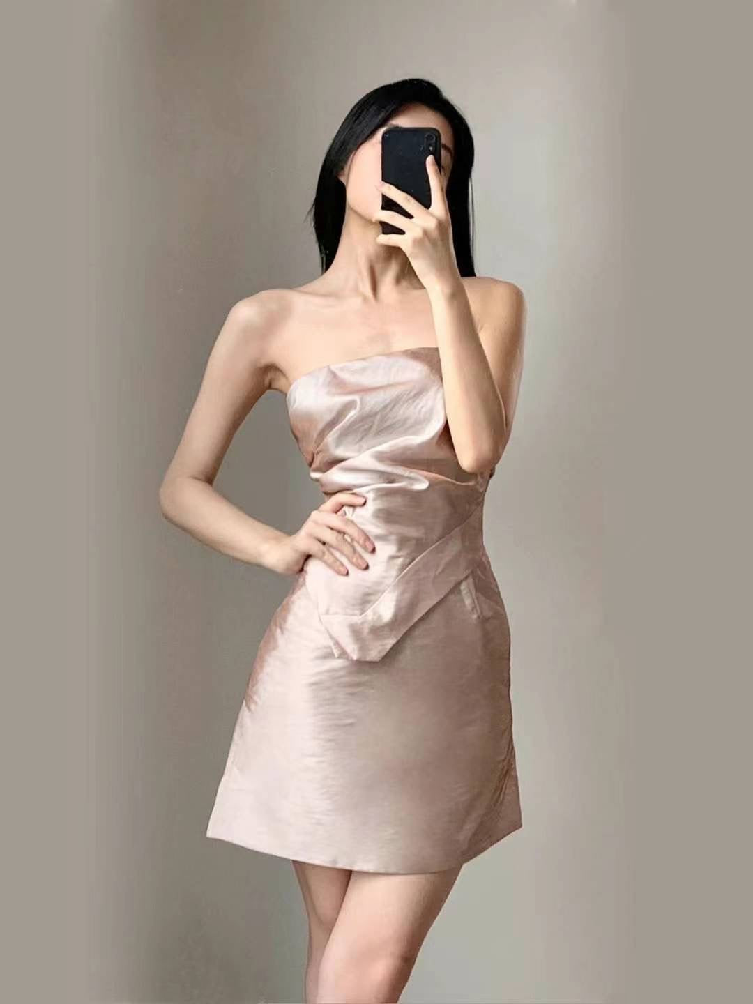 Crow Crew Draped Strapless Satin Maxi Dress Black