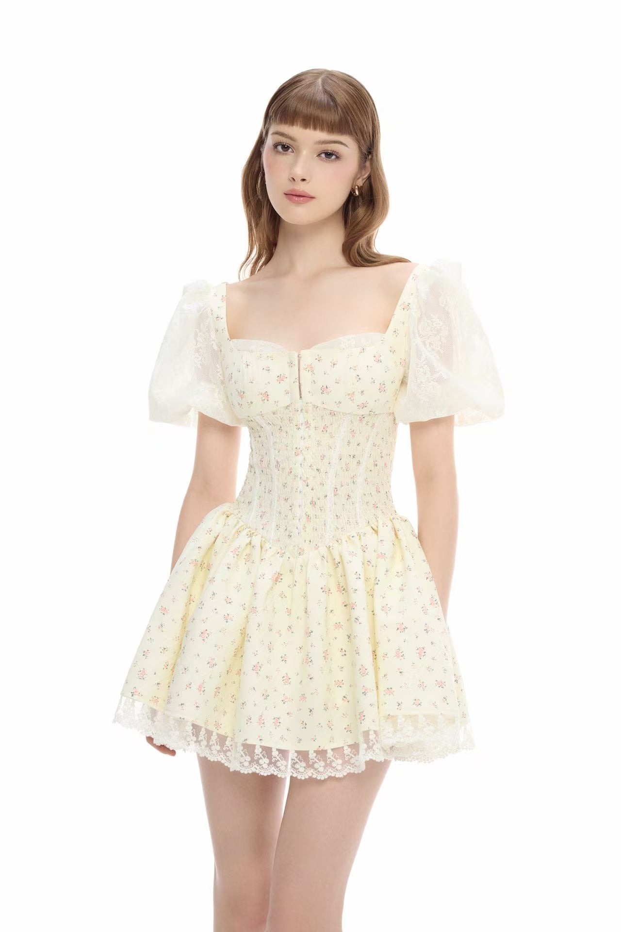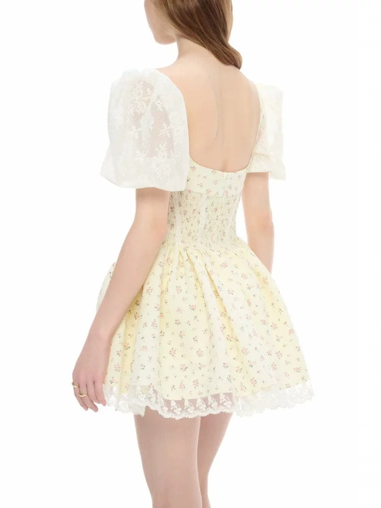 Jubin Aria Floral Mini Dress Light Yellow