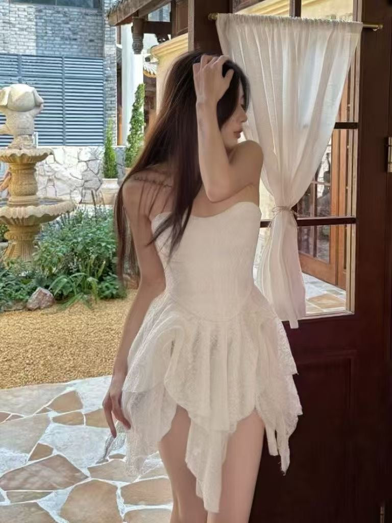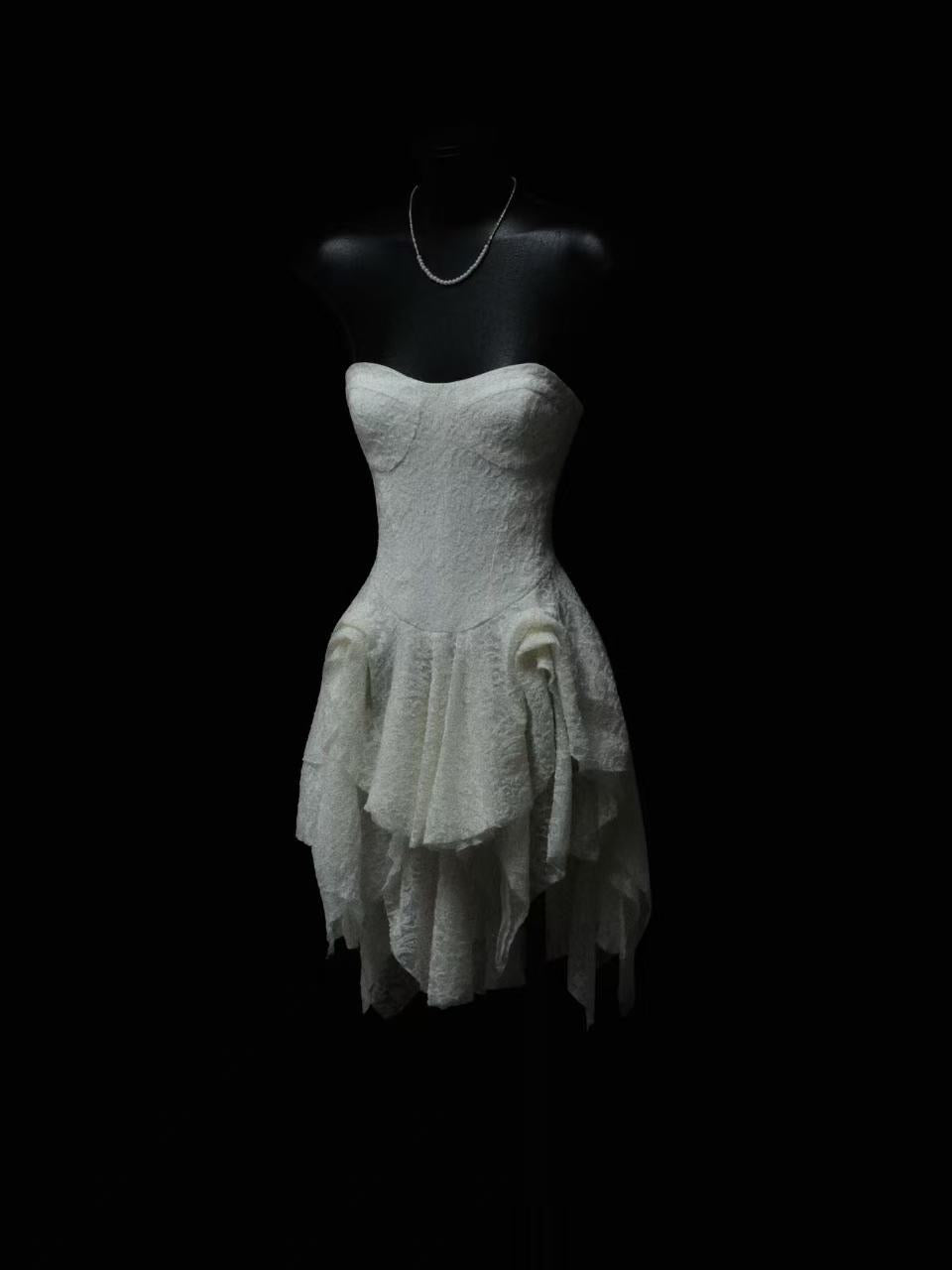 Crow Crew Ruched Tulle Strapless Bustier Mini Dress