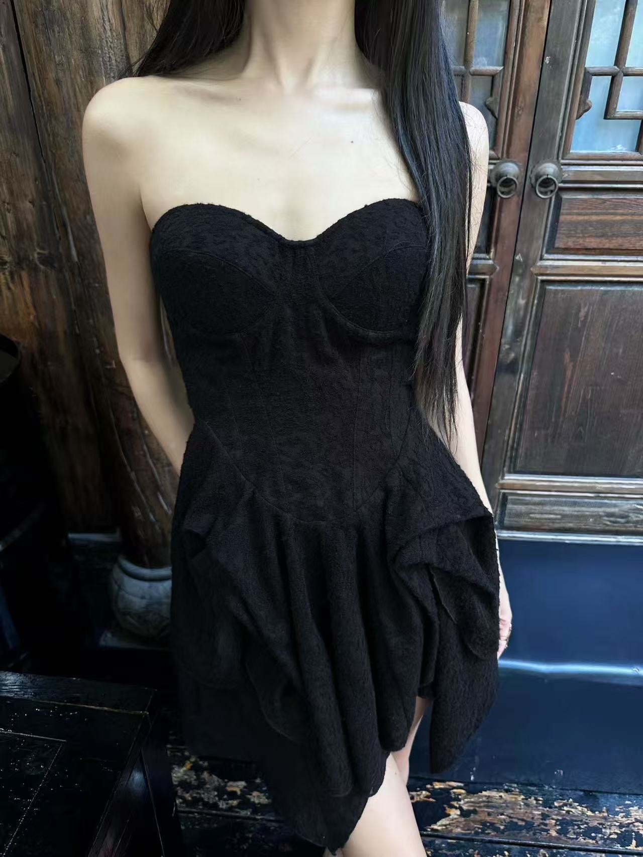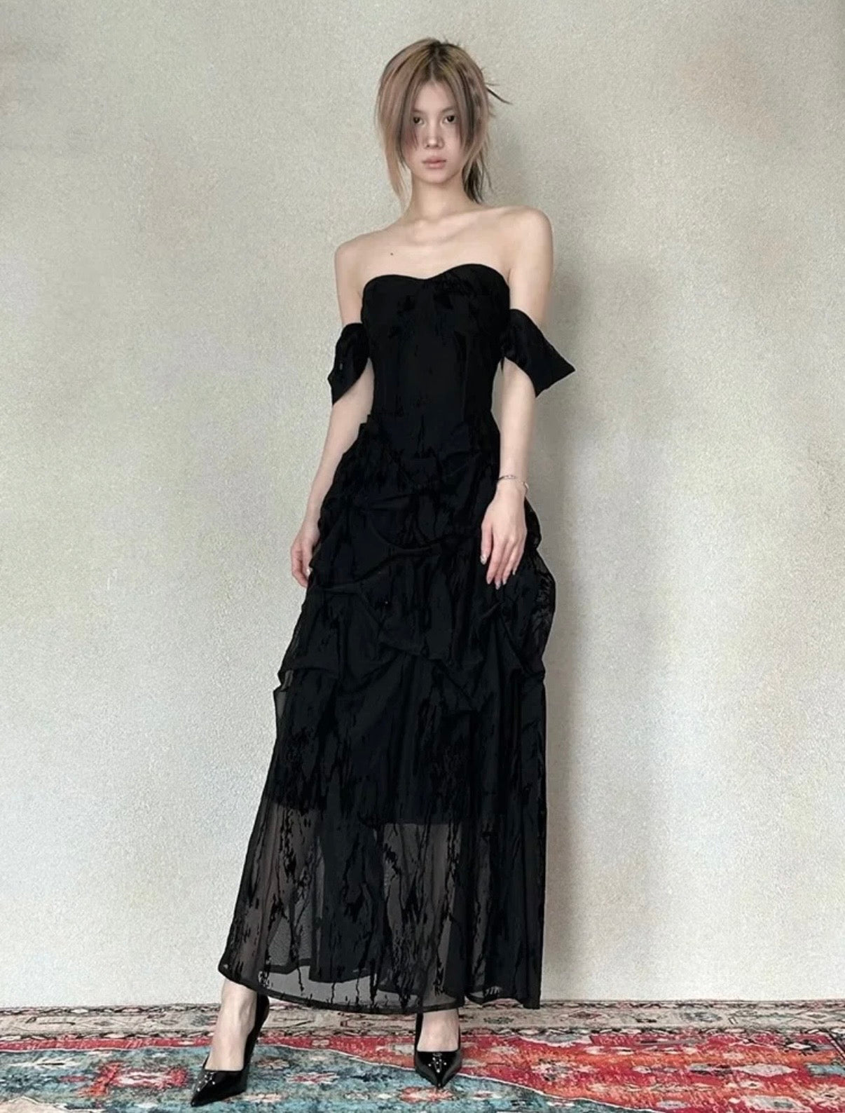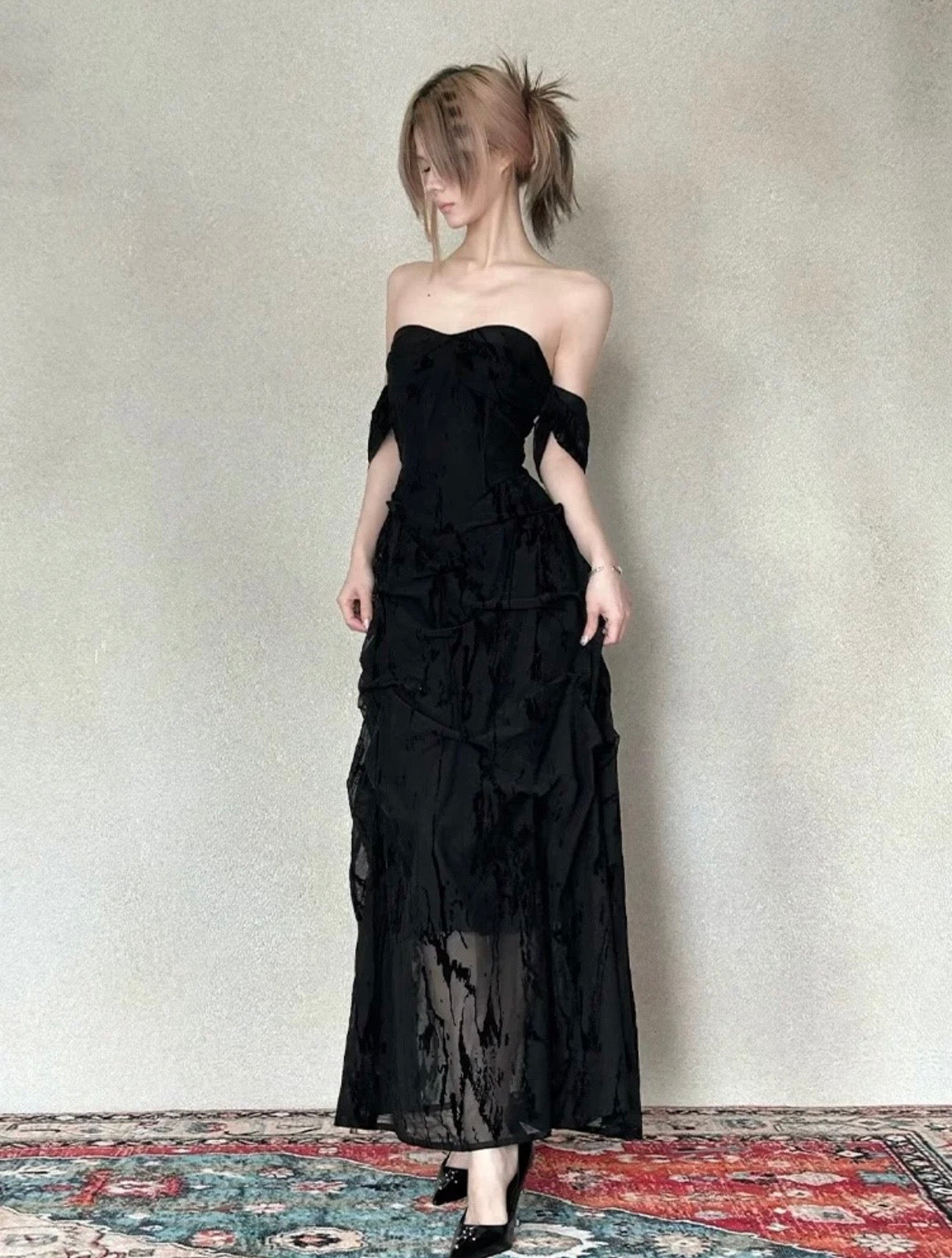 Crow Crew Noir Jacquard Strapless Maxi Dress