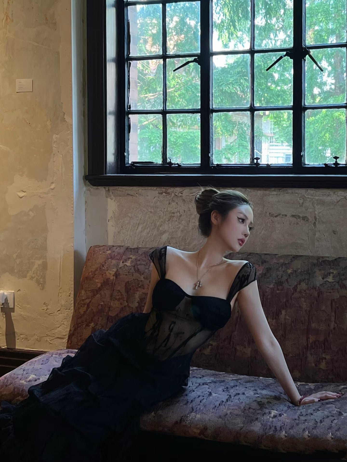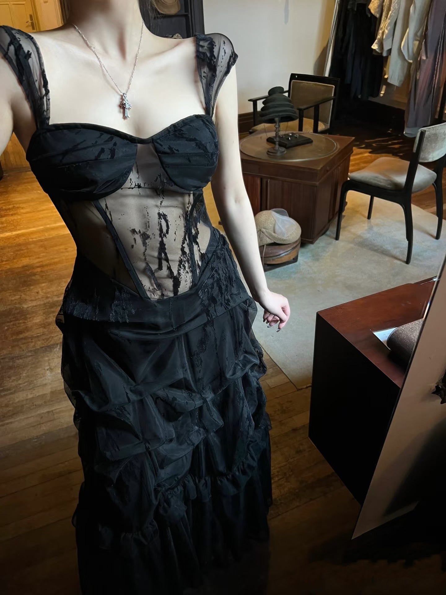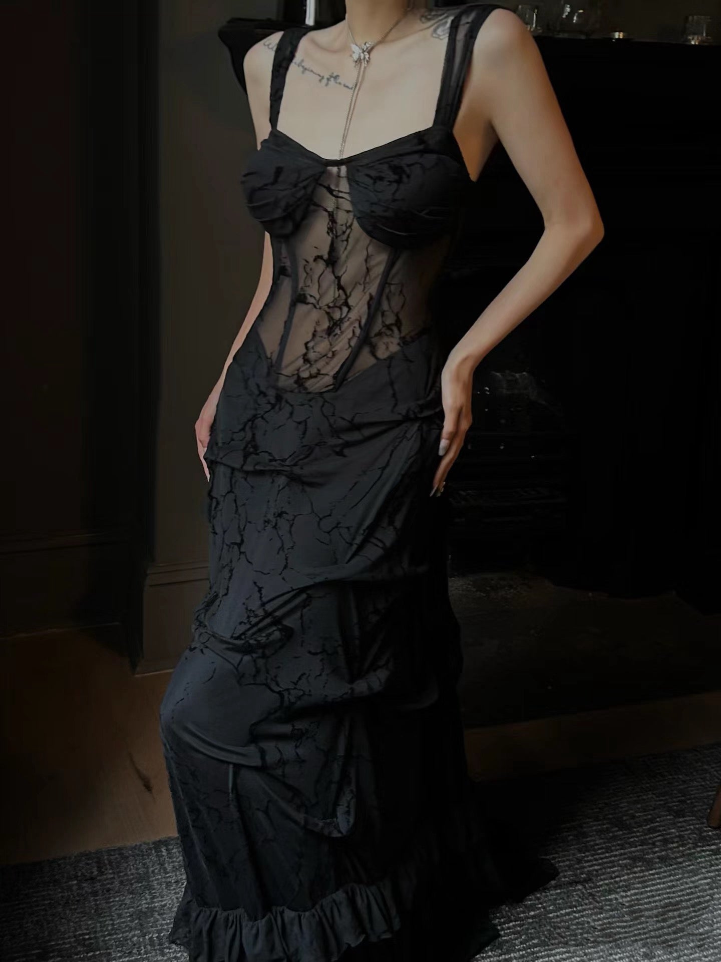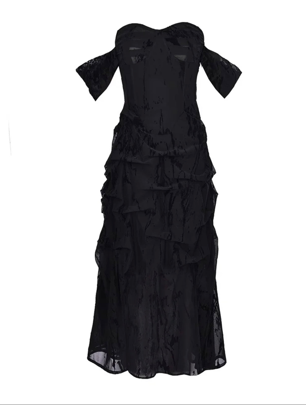 Crow Crew Strapless Sheer Layered Midi Dress - Black
