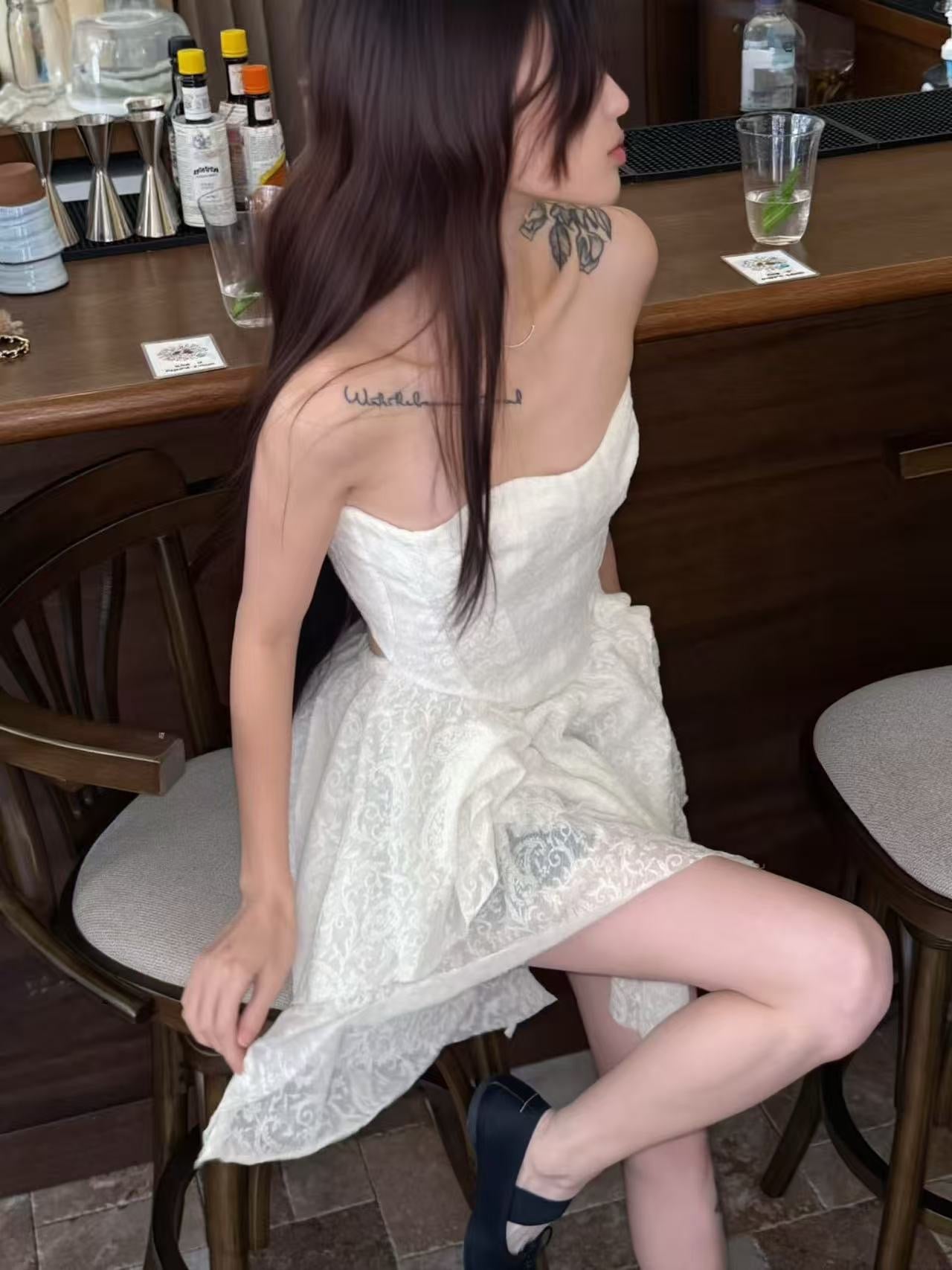 Crow Crew Off-Shoulder Sheer Corset Midi Dress White