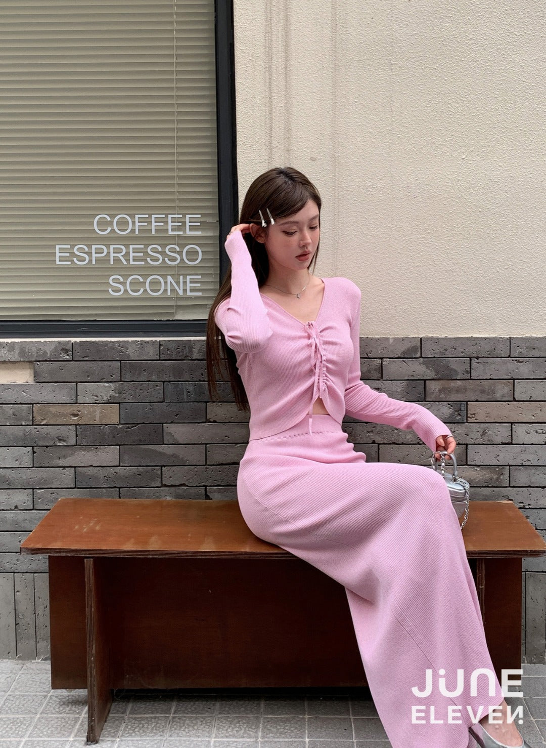 June Eleven Stretch Knit Set (Top & Skirt) Pink