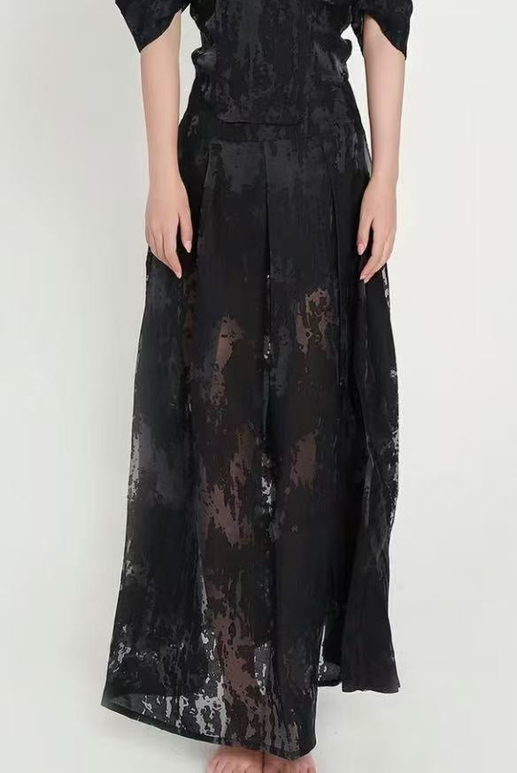 Nick Wang Textured Sheer Layered Maxi Skirt - Black