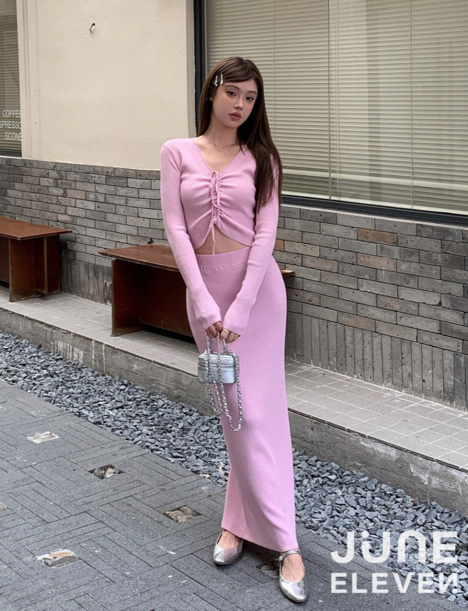 June Eleven Stretch Knit Set Pink - Free Size