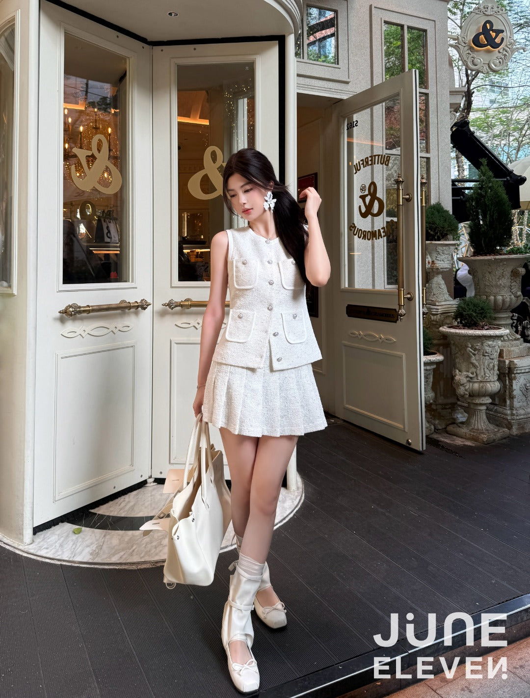 Moon&Sea Embellished Tweed Mini Dress White (Matching Set Available)