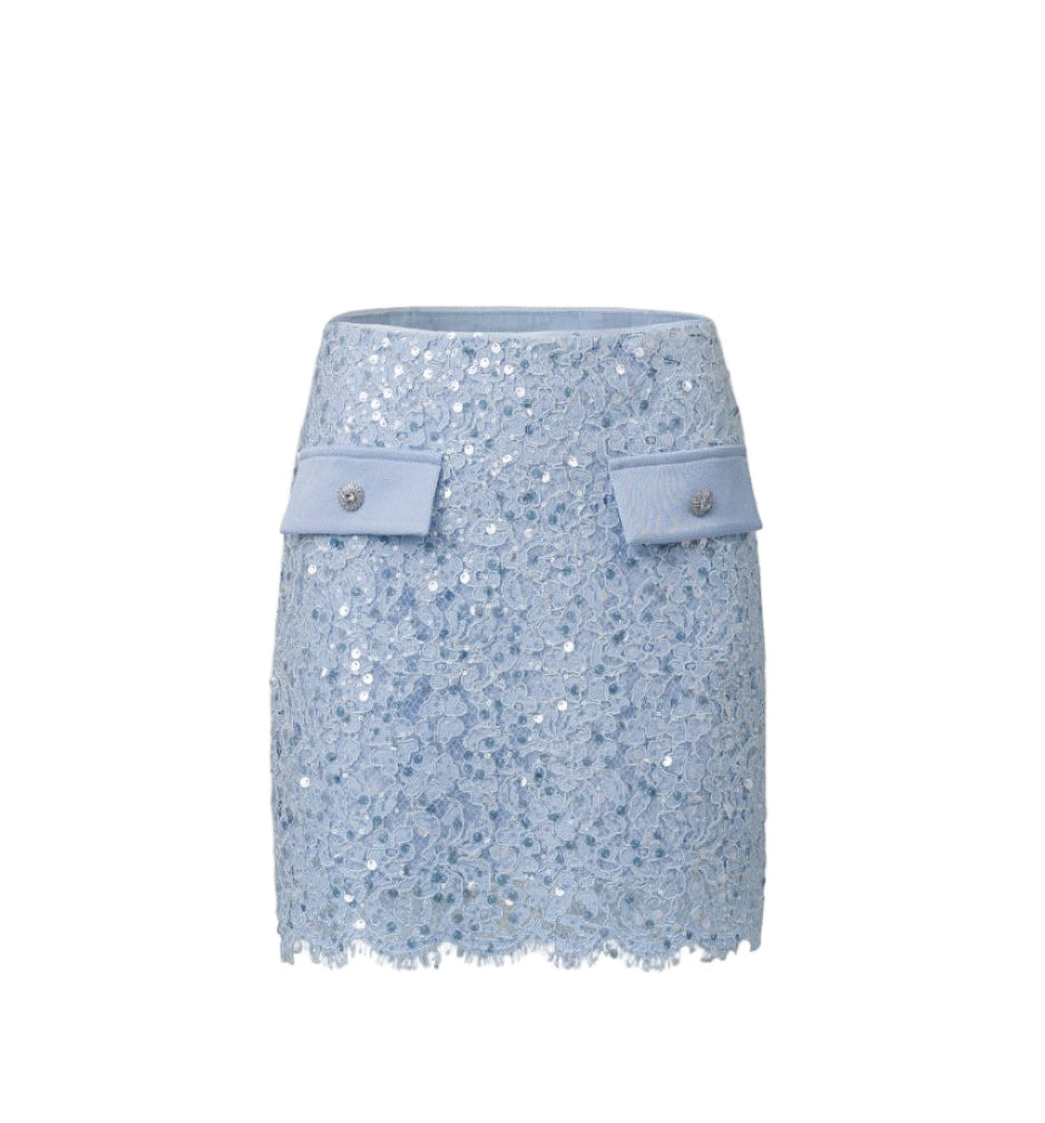 June Eleven Sequin Lace Mini Skirt - Baby Blue