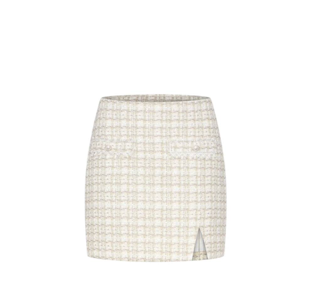 June Eleven Tweed A-Line Mini Skirt - Cream