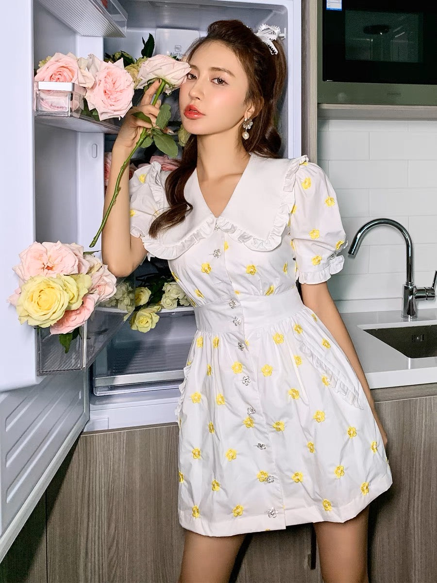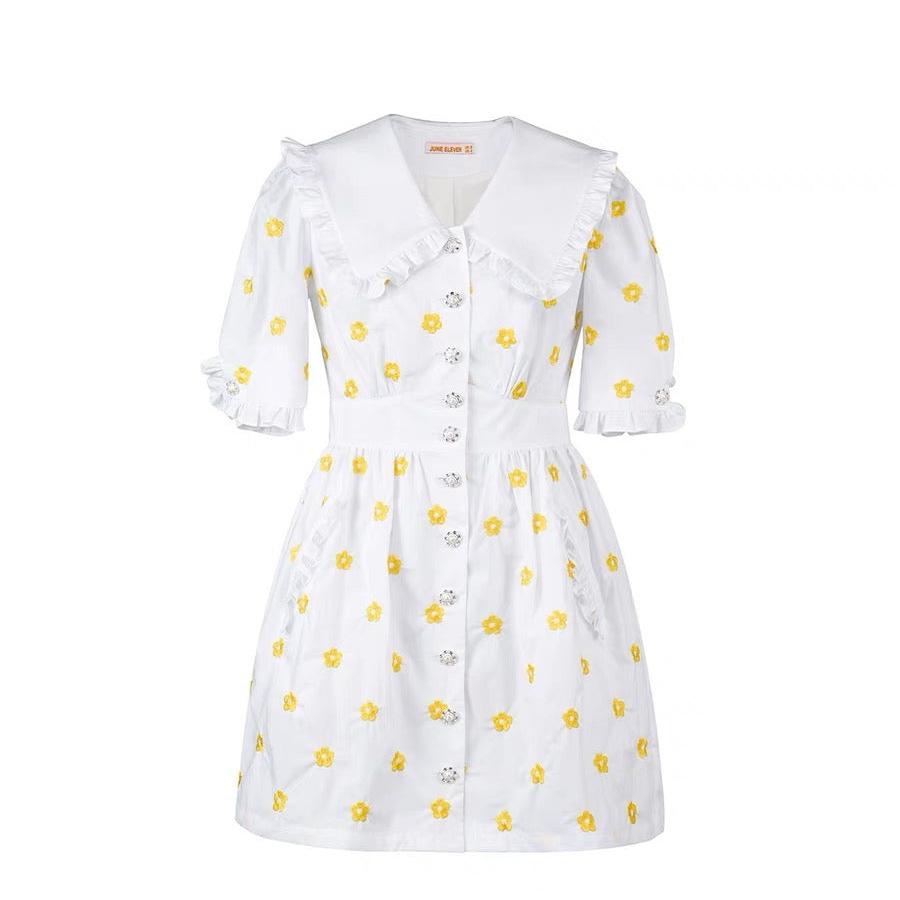 June Eleven Yellow Floral Doll Collar Mini Dress