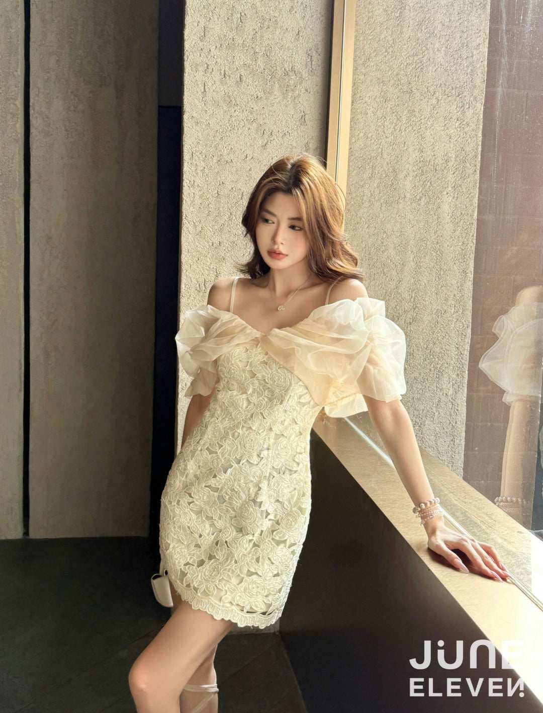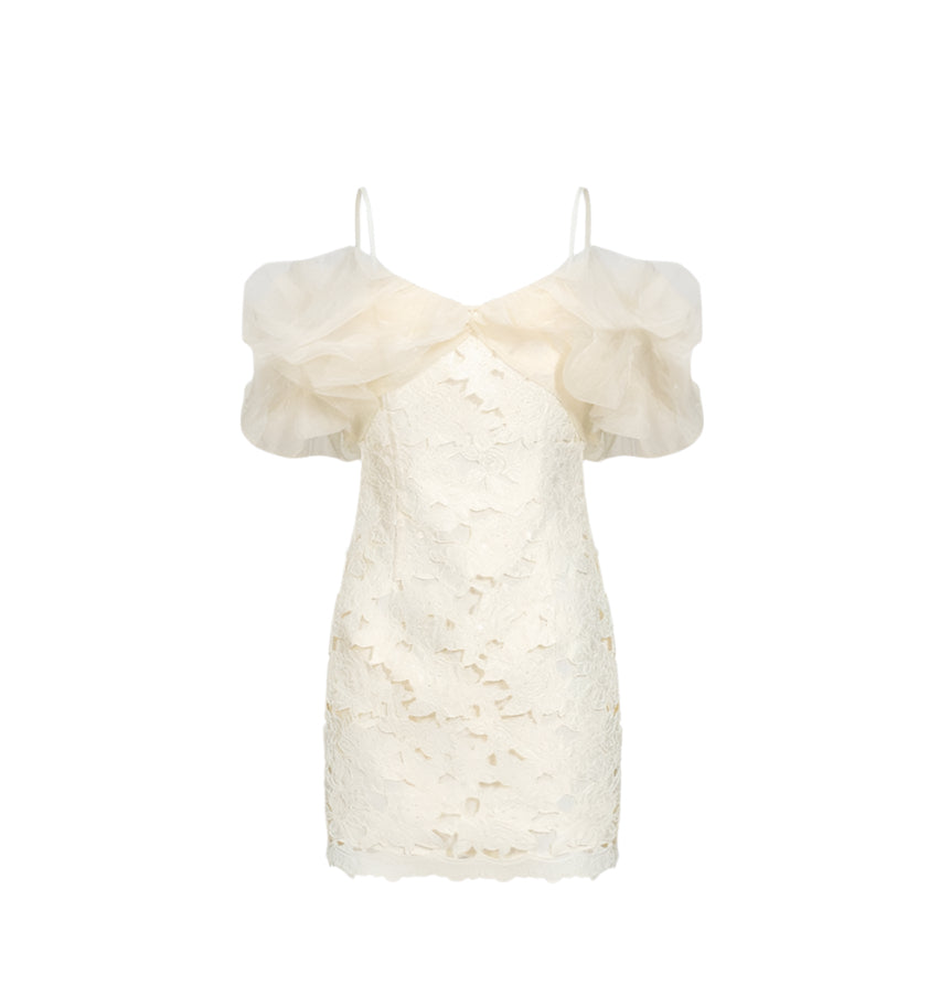 June Eleven Sequin Lace Puff Mini Dress