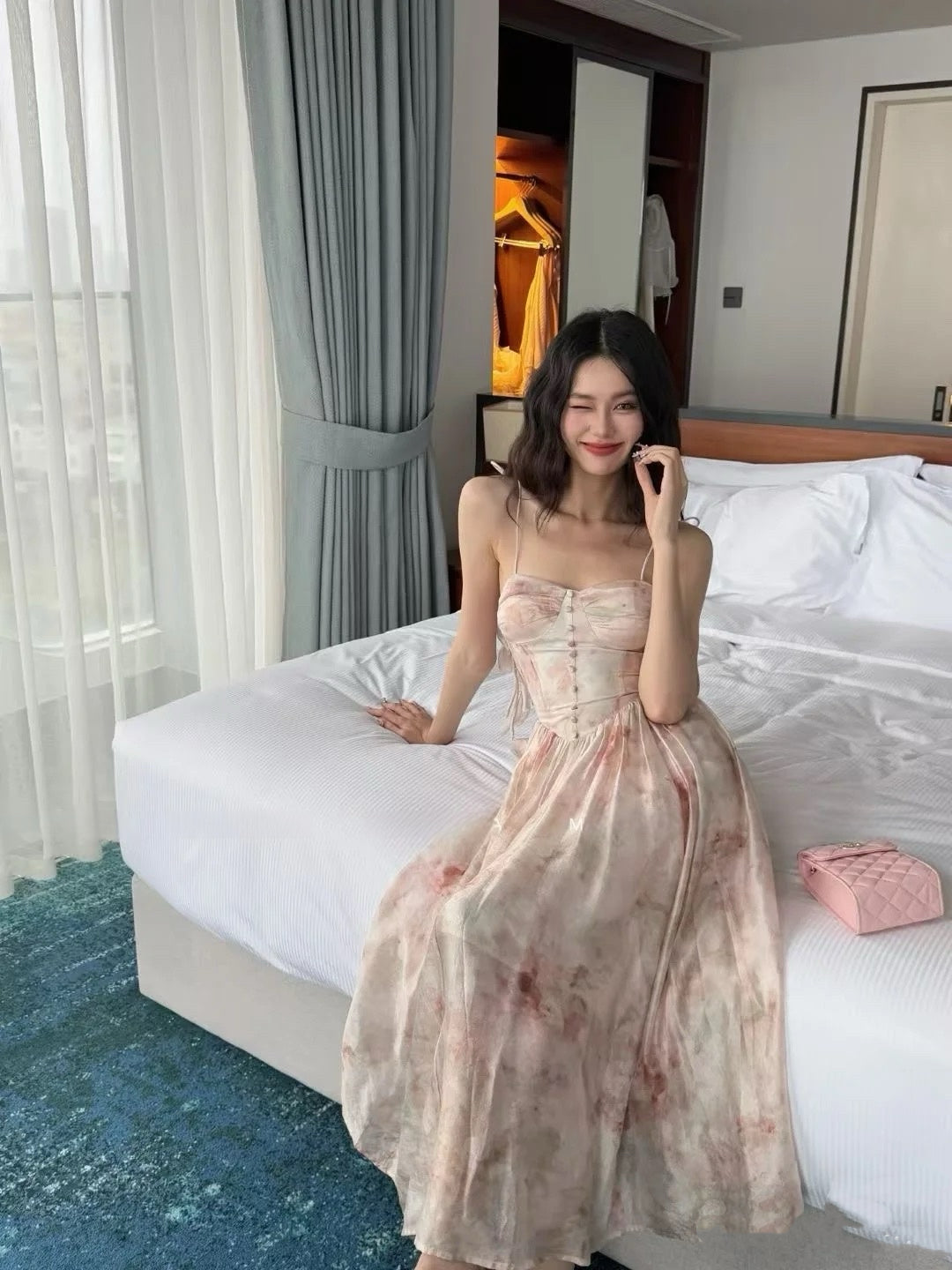 Moon&Sea Floral Midi Dress Pink
