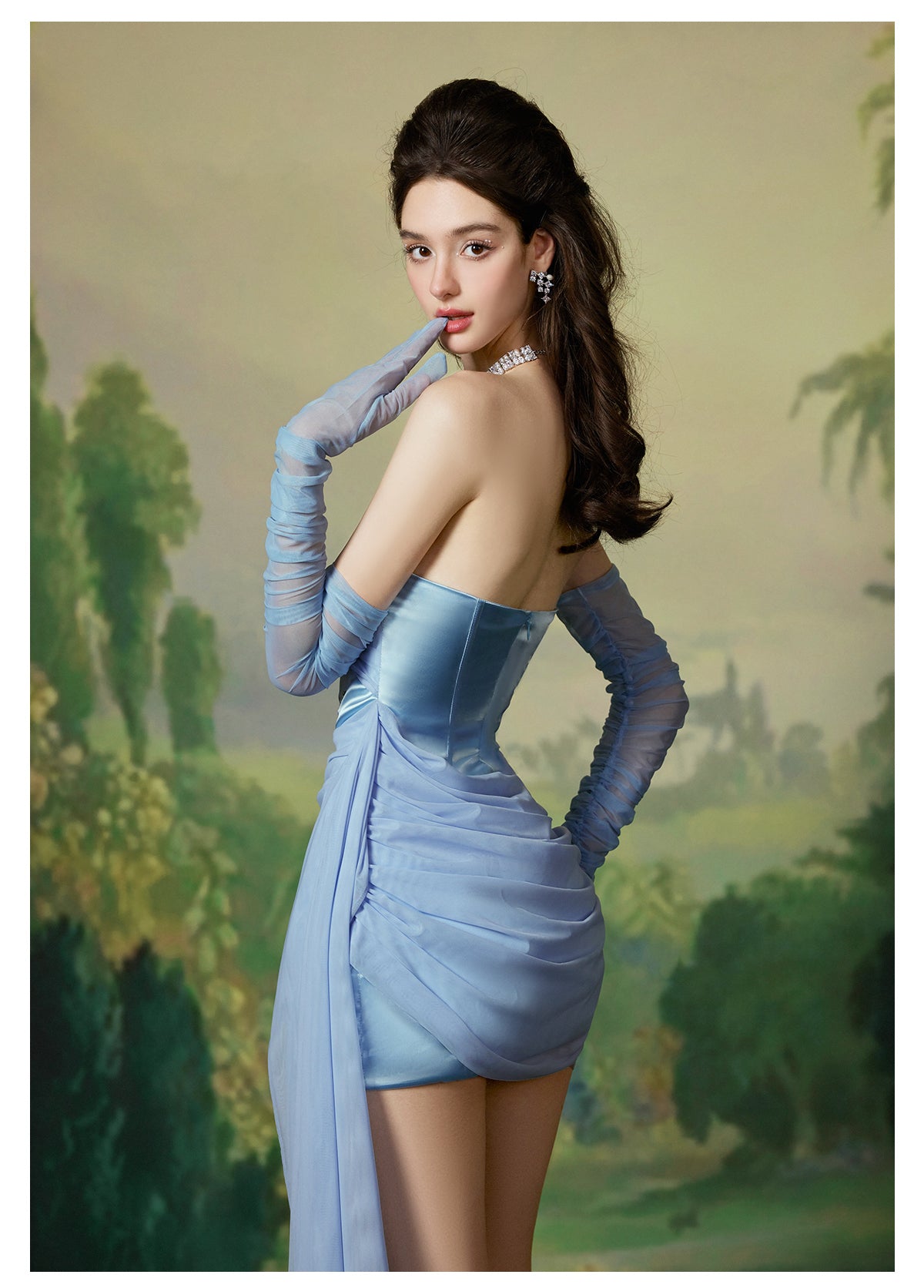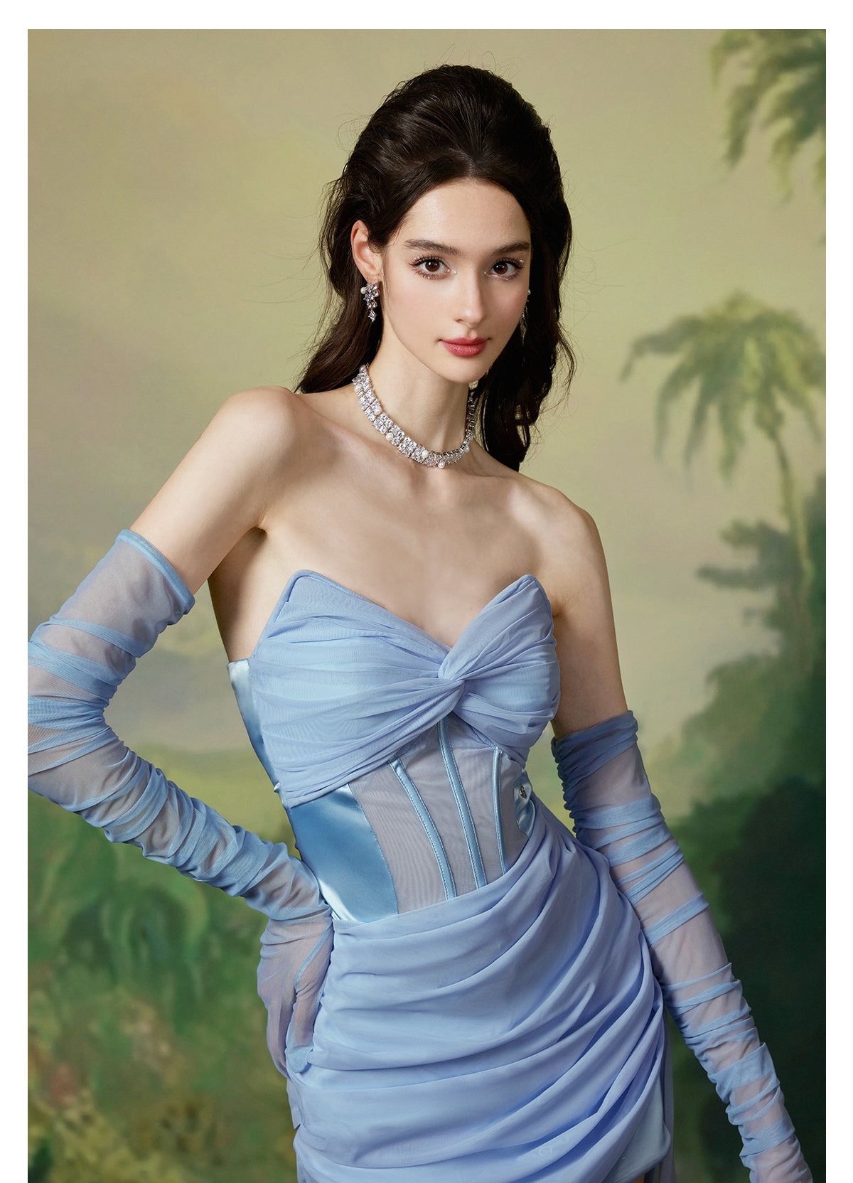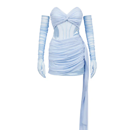 Sheer Luck Tara Boned Ribbon Mini Dress with Glovers - Blue