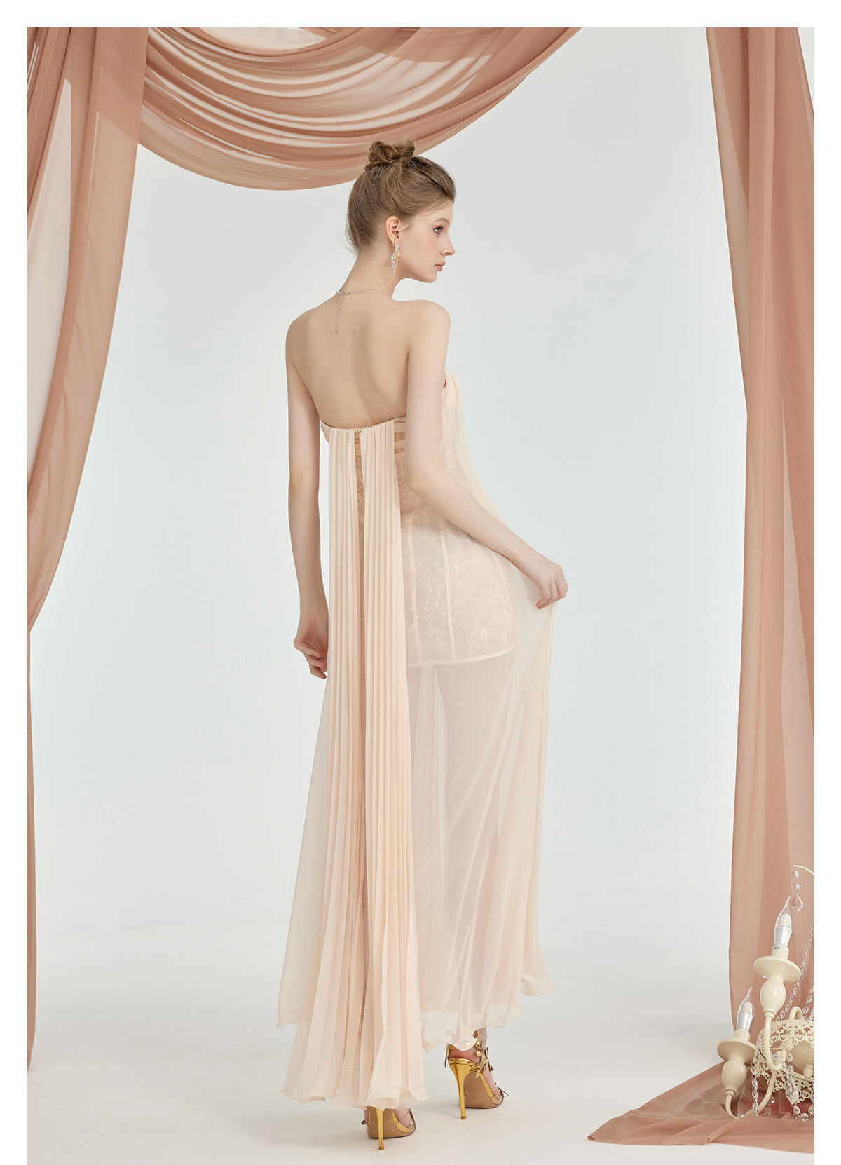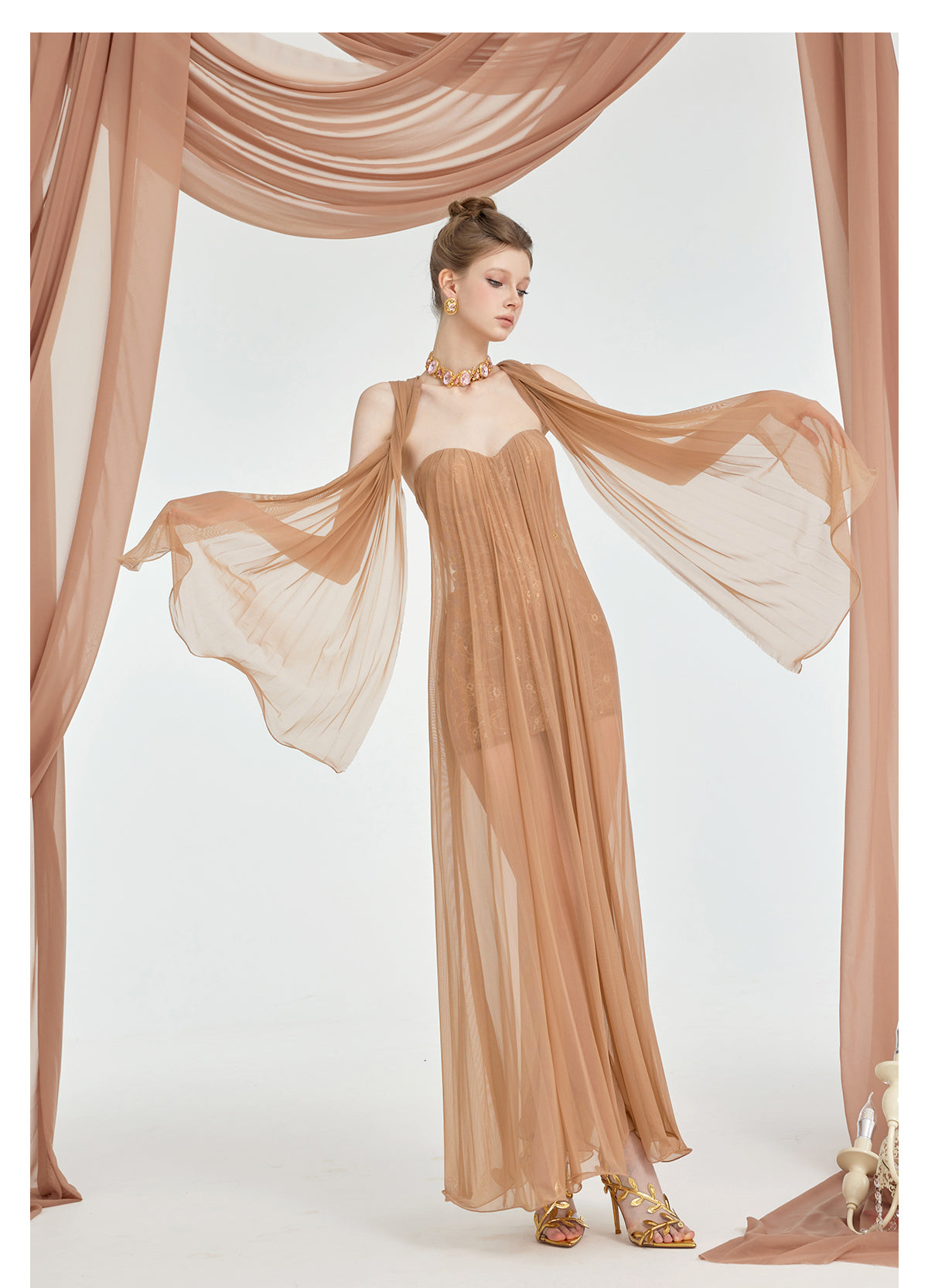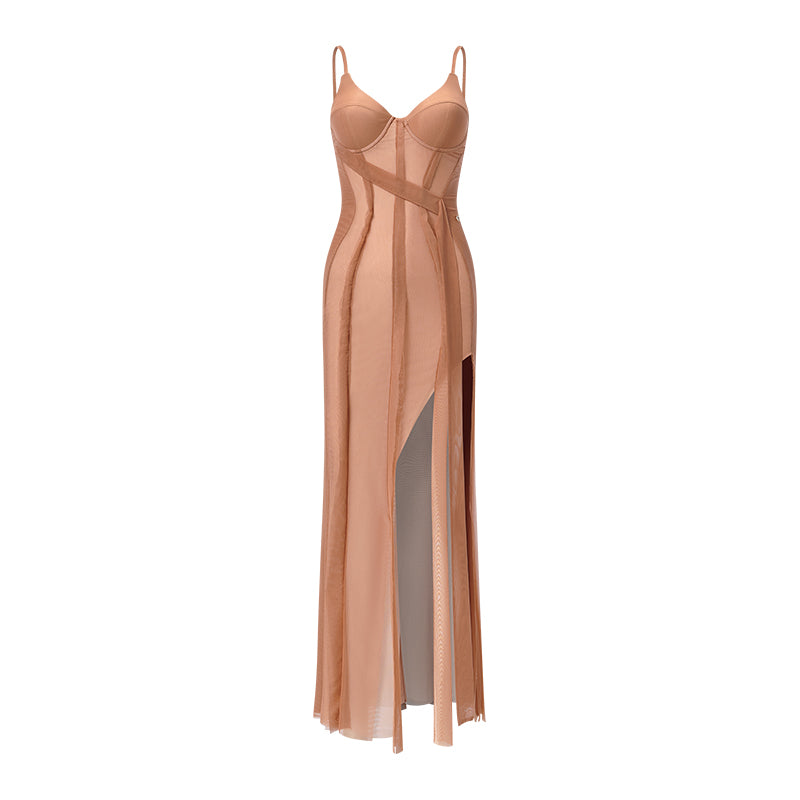 Sheer Luck Nora Mesh Corset Maxi Dress Nude