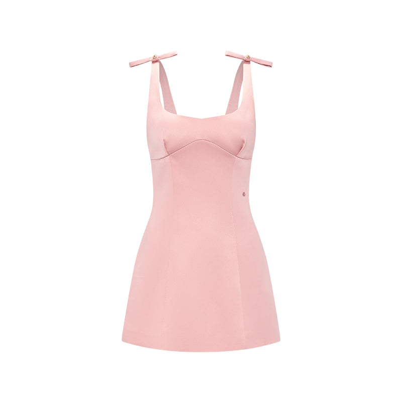 Sheer Luck Reve Beaded Bow Mini Dress - Pink