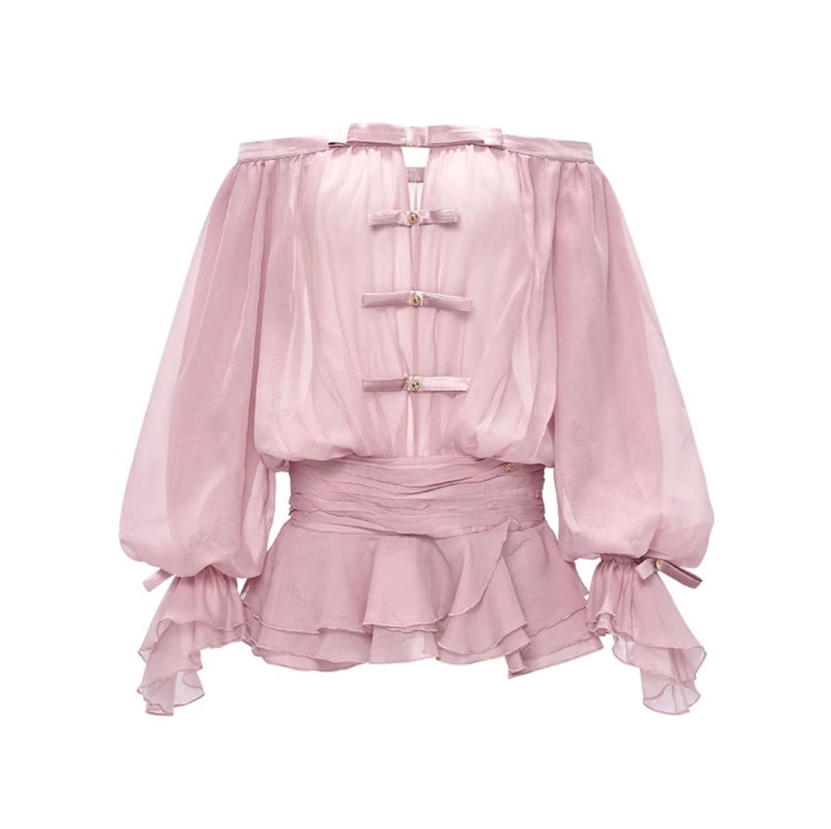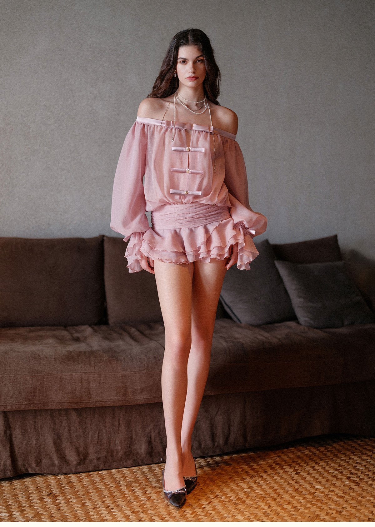 Sheer Luck Off-Shoulder Puff Sleeve Mini Dress Pink
