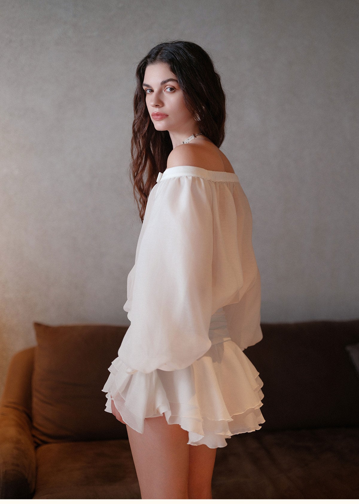 Sheer Luck Off-Shoulder Puff Sleeve Mini Dress White