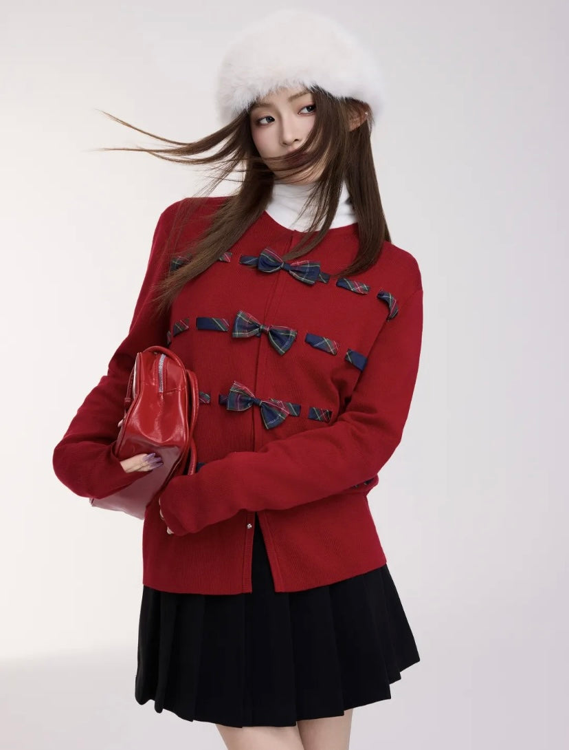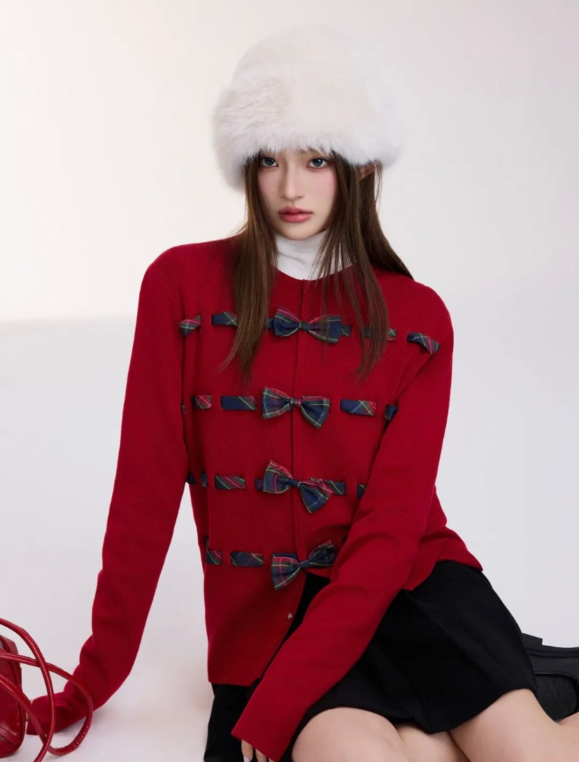 Bow Knit Cardigan Red - Free Size