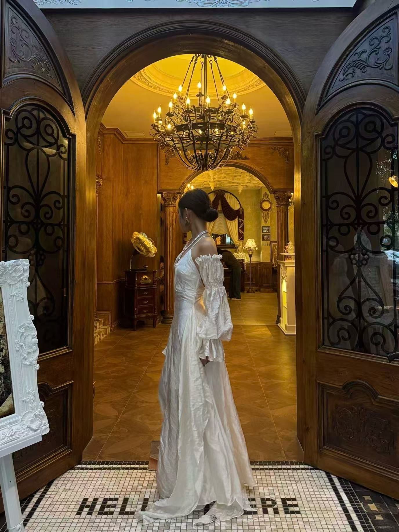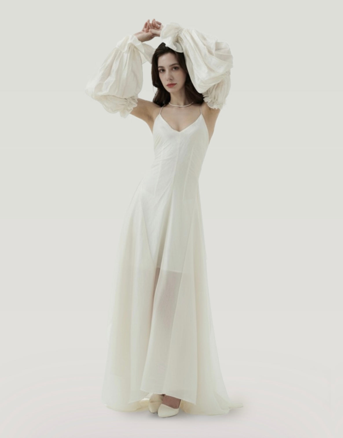Crow Crew Sheer Puff Sleeve Maxi Dress Ivory