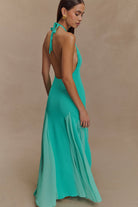 Meshki Soleil Knit and Mesh Halter Maxi Dress - Lagoon