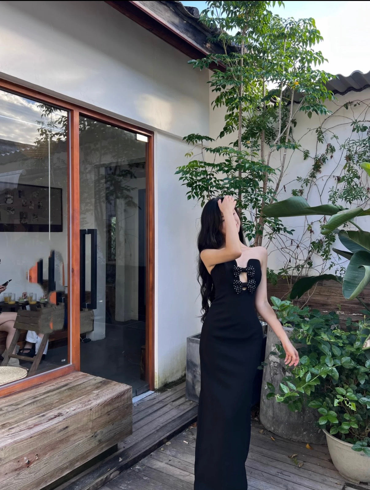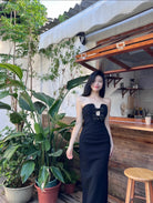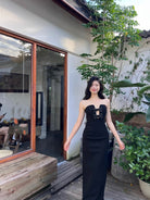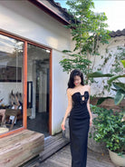 MISHA Strapless Maxi Dress with Polka-dot Blow - Black
