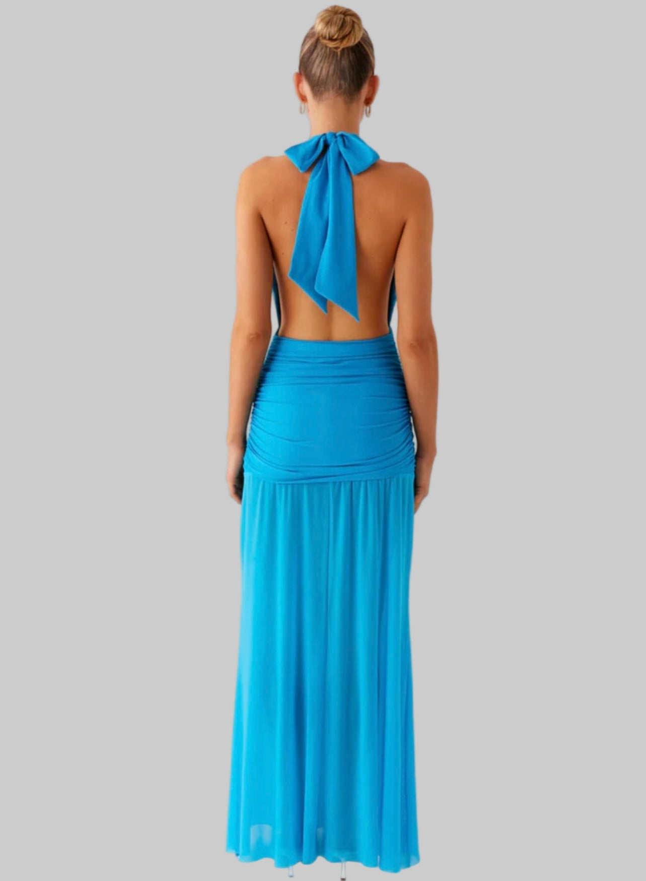 Peppermayo Exclusive Dilemma Halter Maxi Dress Blue