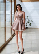 Sheer Luck Lisbon V-Neck A-line Mini Dress Dusty Rose