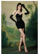 Sheer Luck Tara Boned Ribbon Mini Dress with Glovers - Black