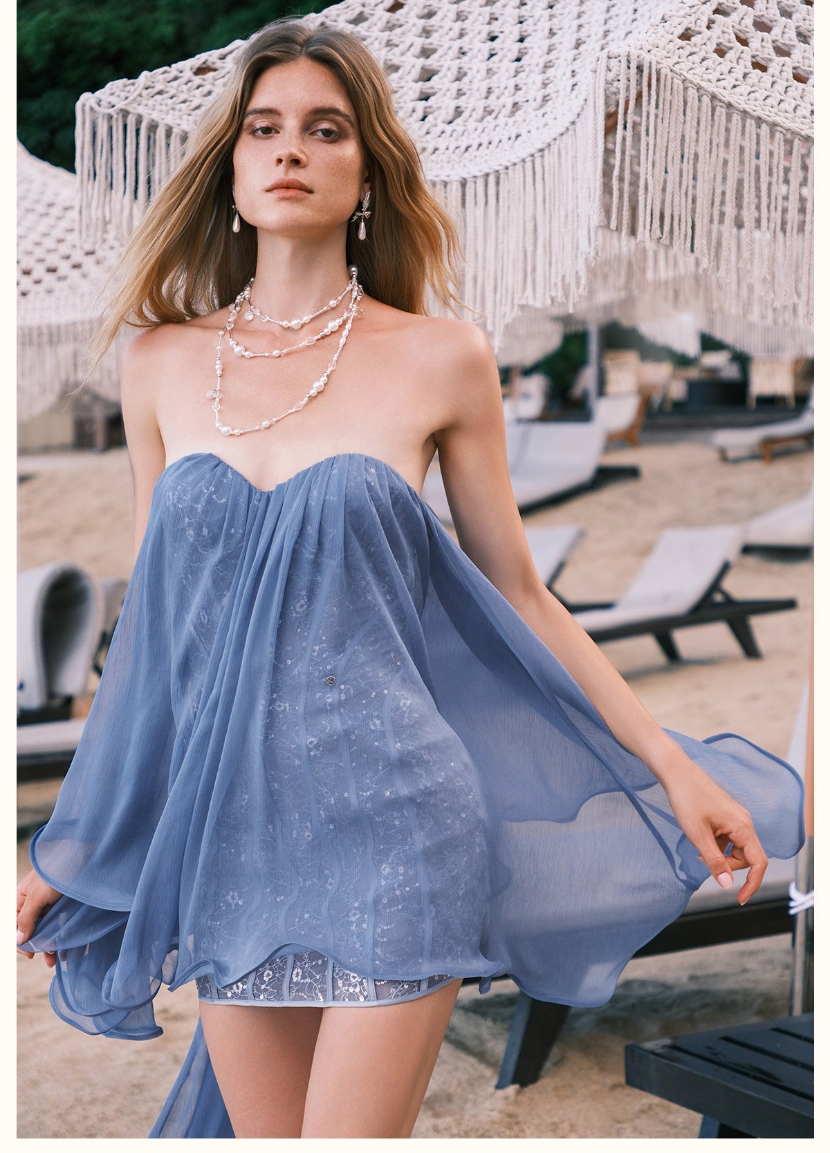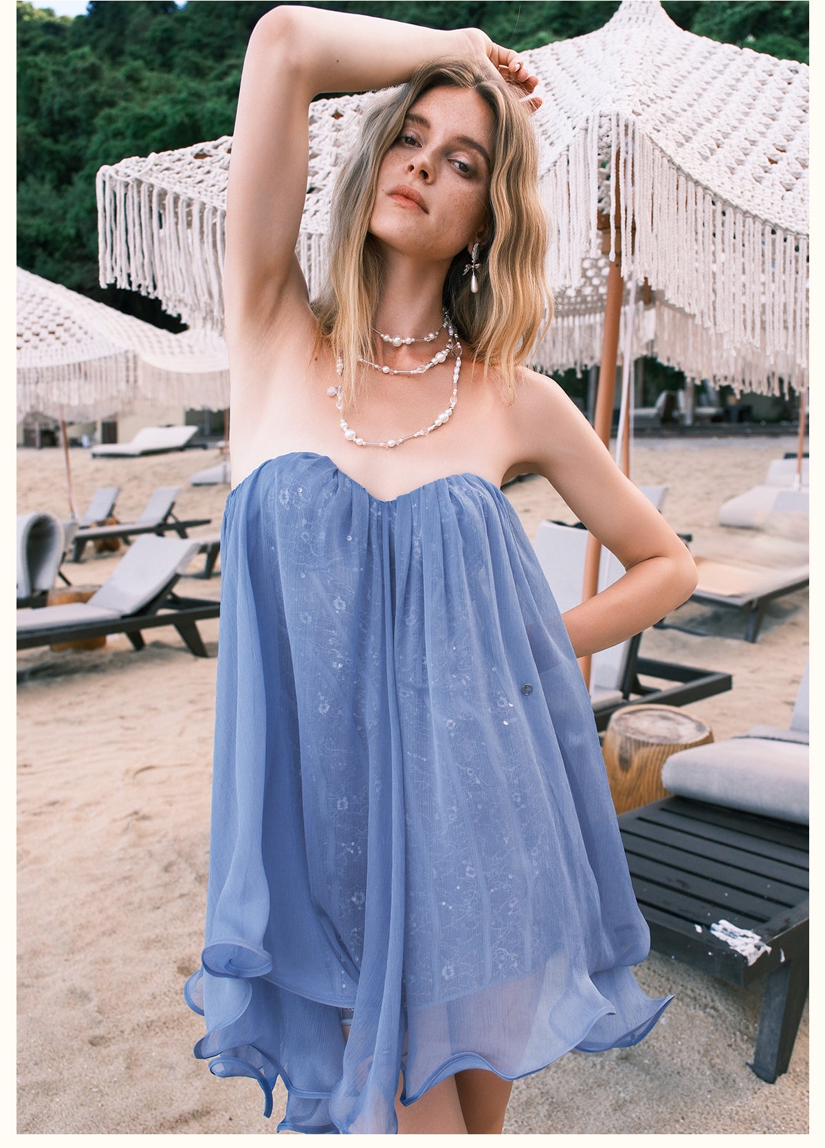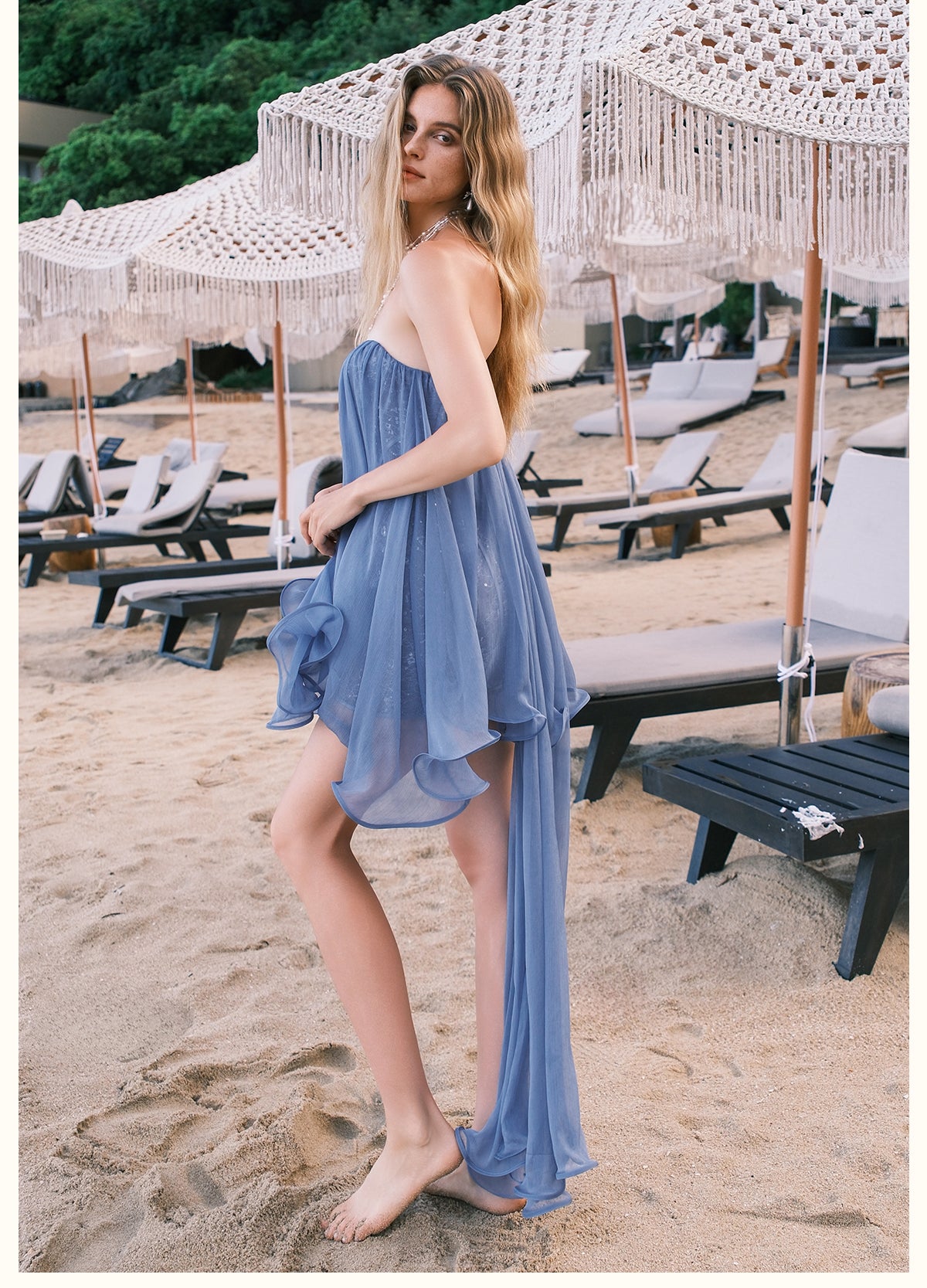 Sheer Luck Strapless Cascade Ribbon Mini Dress - Blue