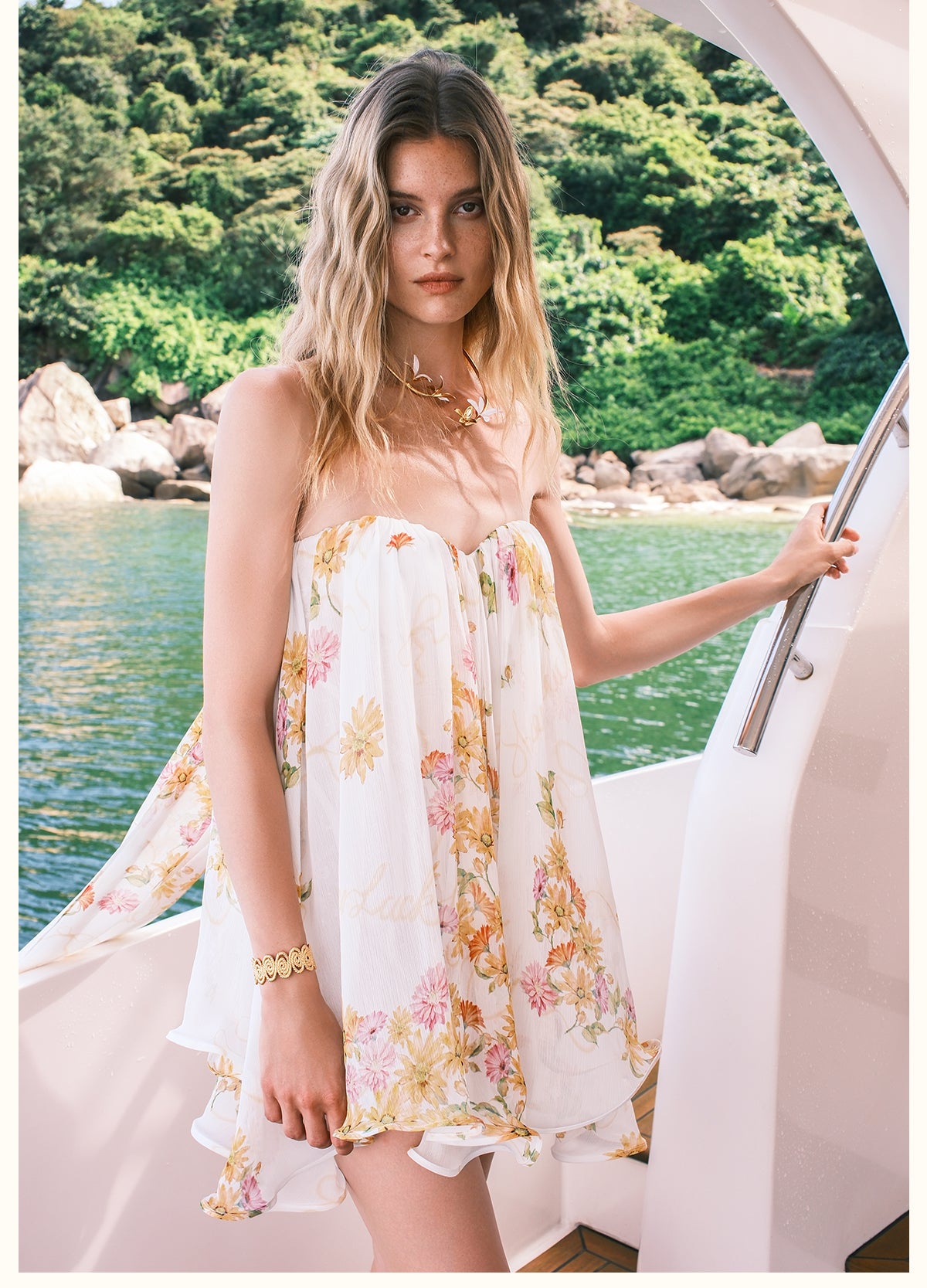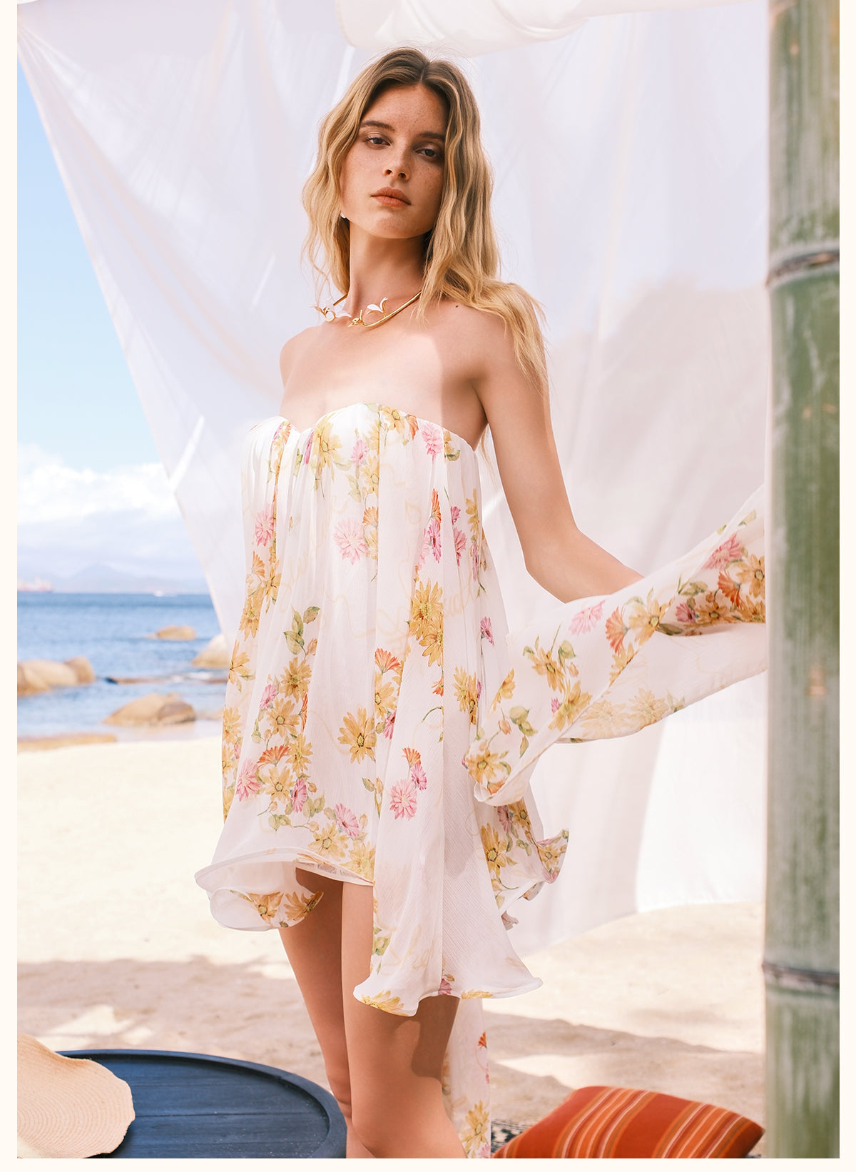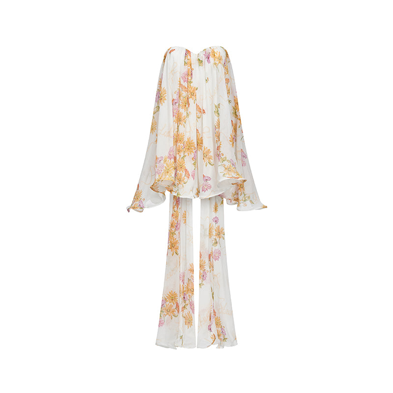 Sheer Luck Strapless Cascade Ribbon Mini Dress - Ivory Floral