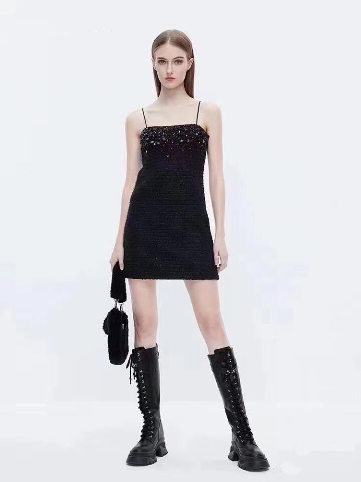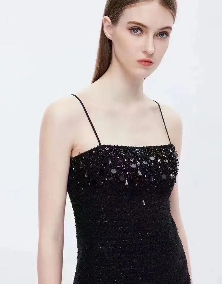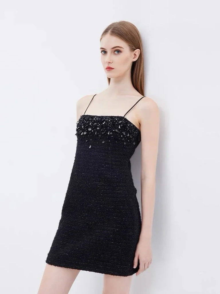 Moon&Sea Embellished Tweed Mini Dress Black