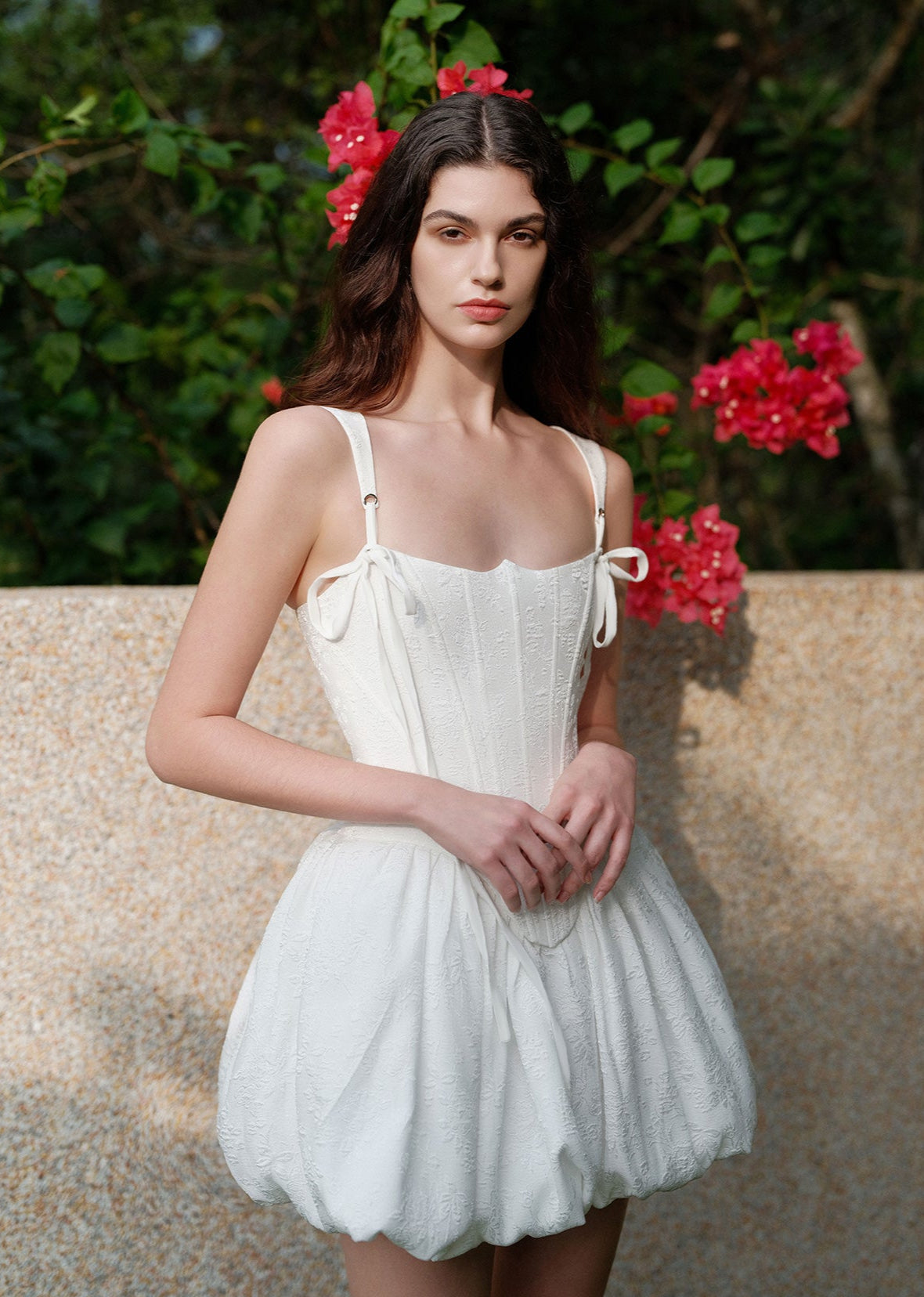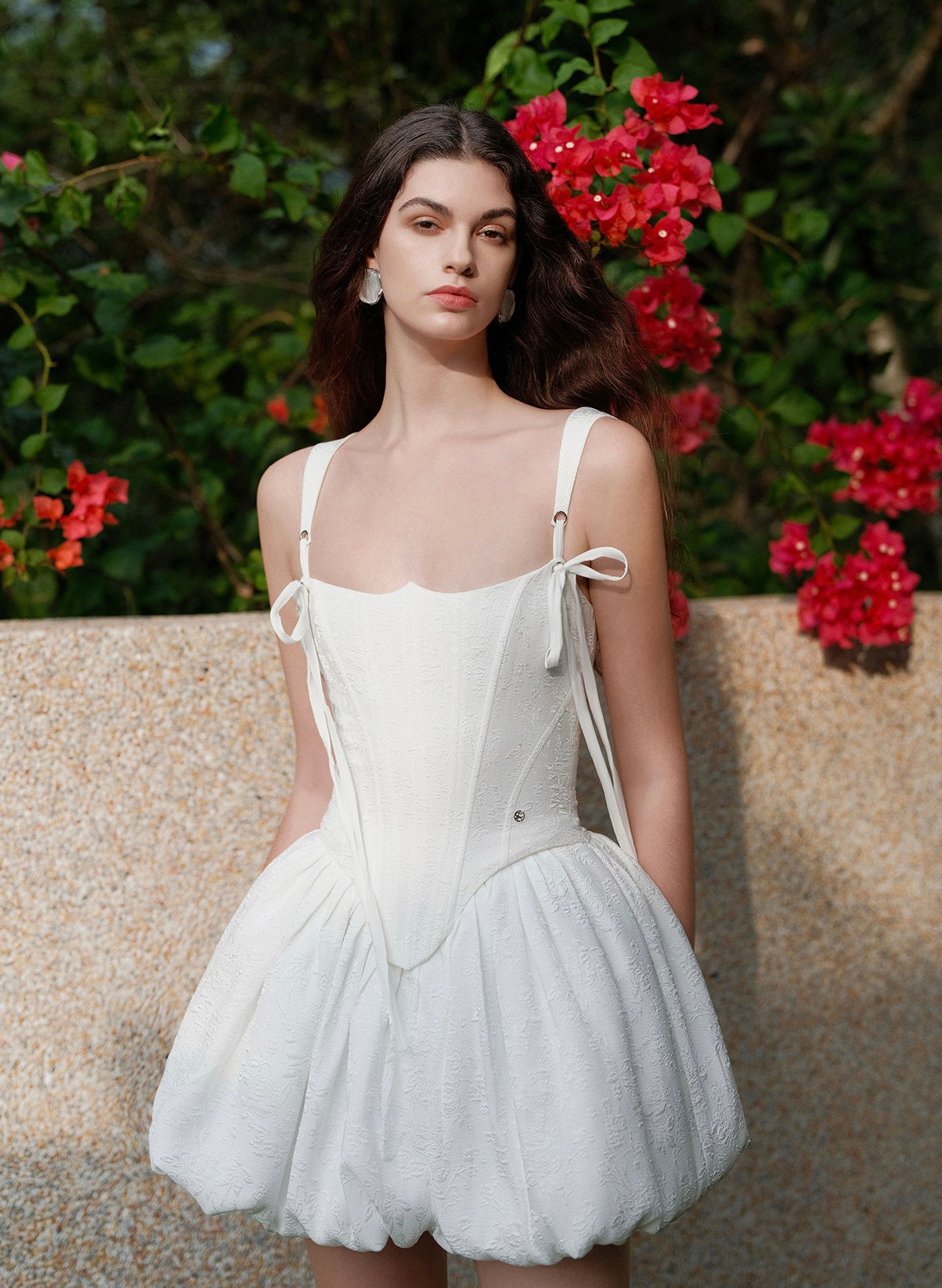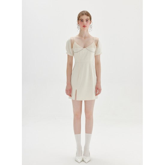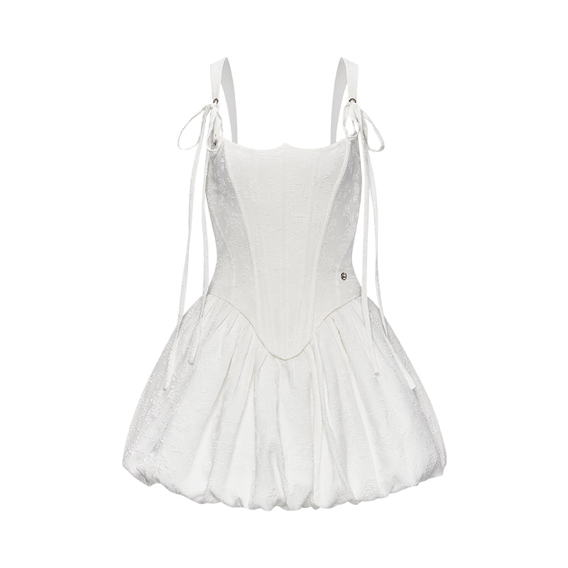Sheer Luck Amari Boned Waist Puff Mini Dress White