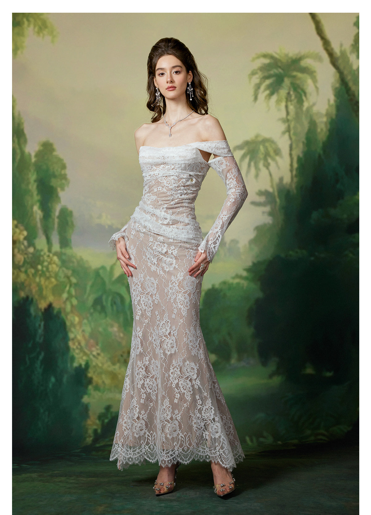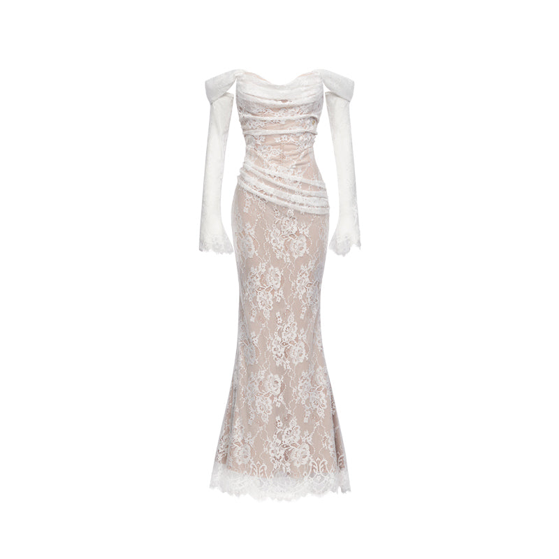 Sheer Luck Ariel Floral Lace Mermaid Maxi Dress White