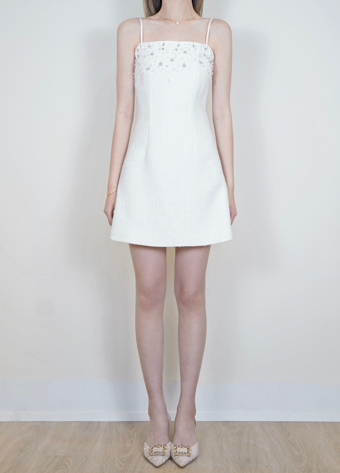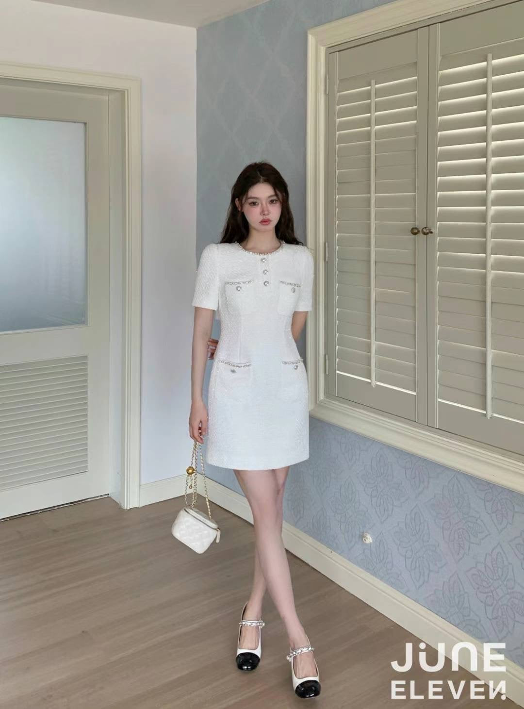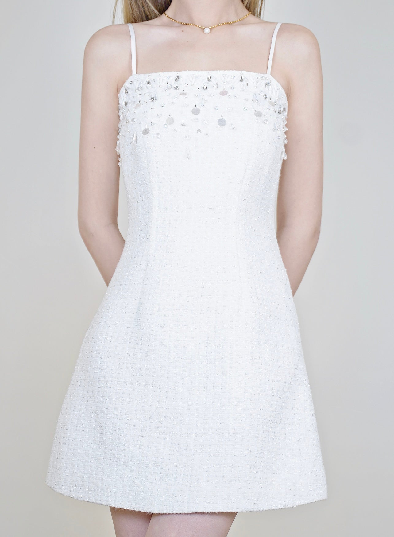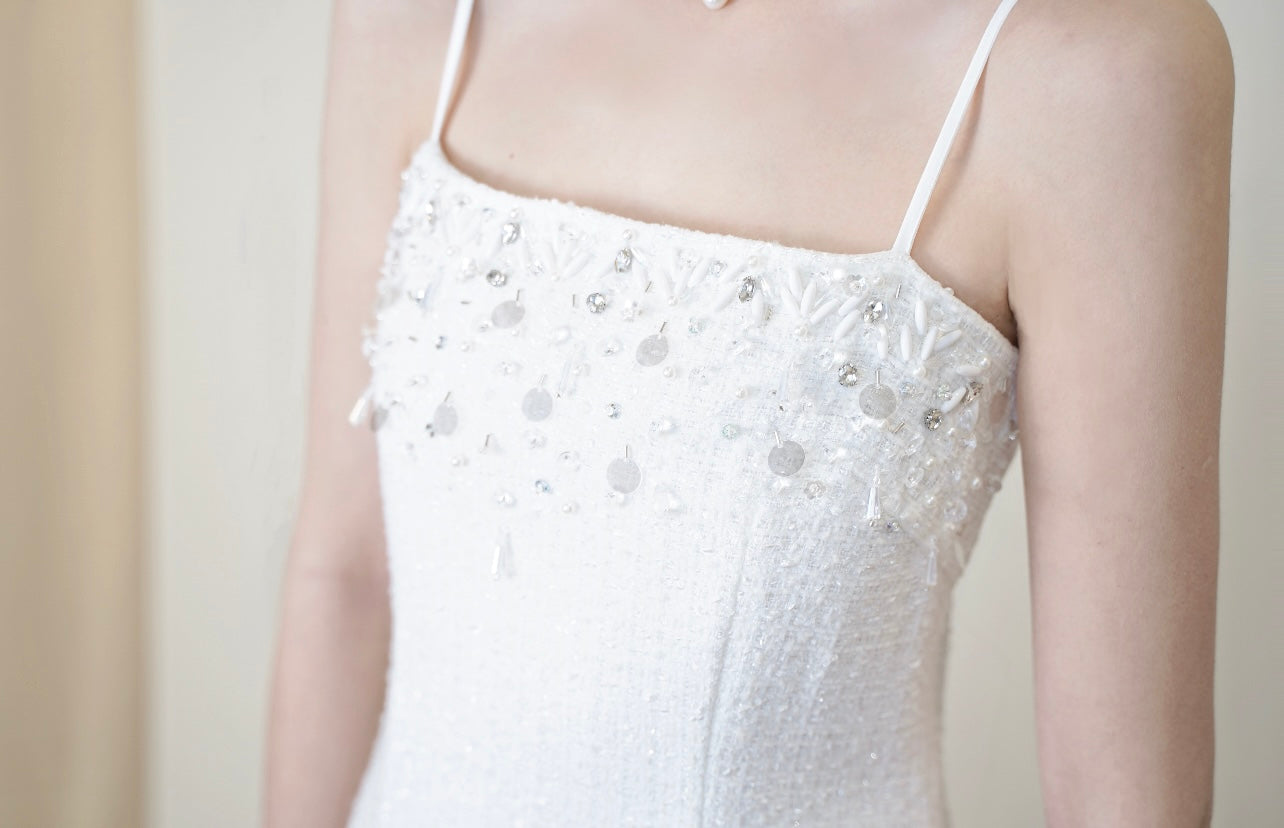 Moon&Sea Embellished Tweed Mini Dress White (Matching Set Available)
