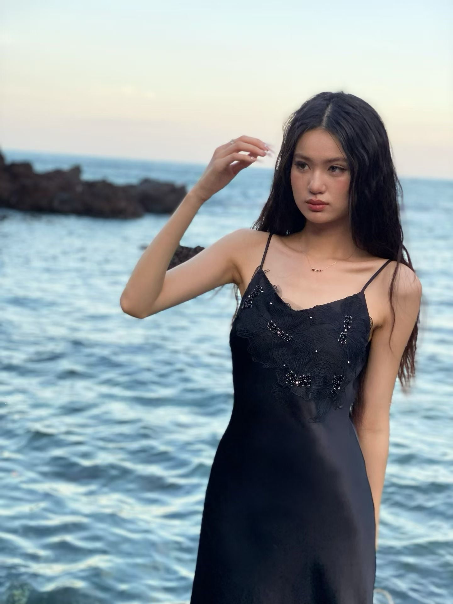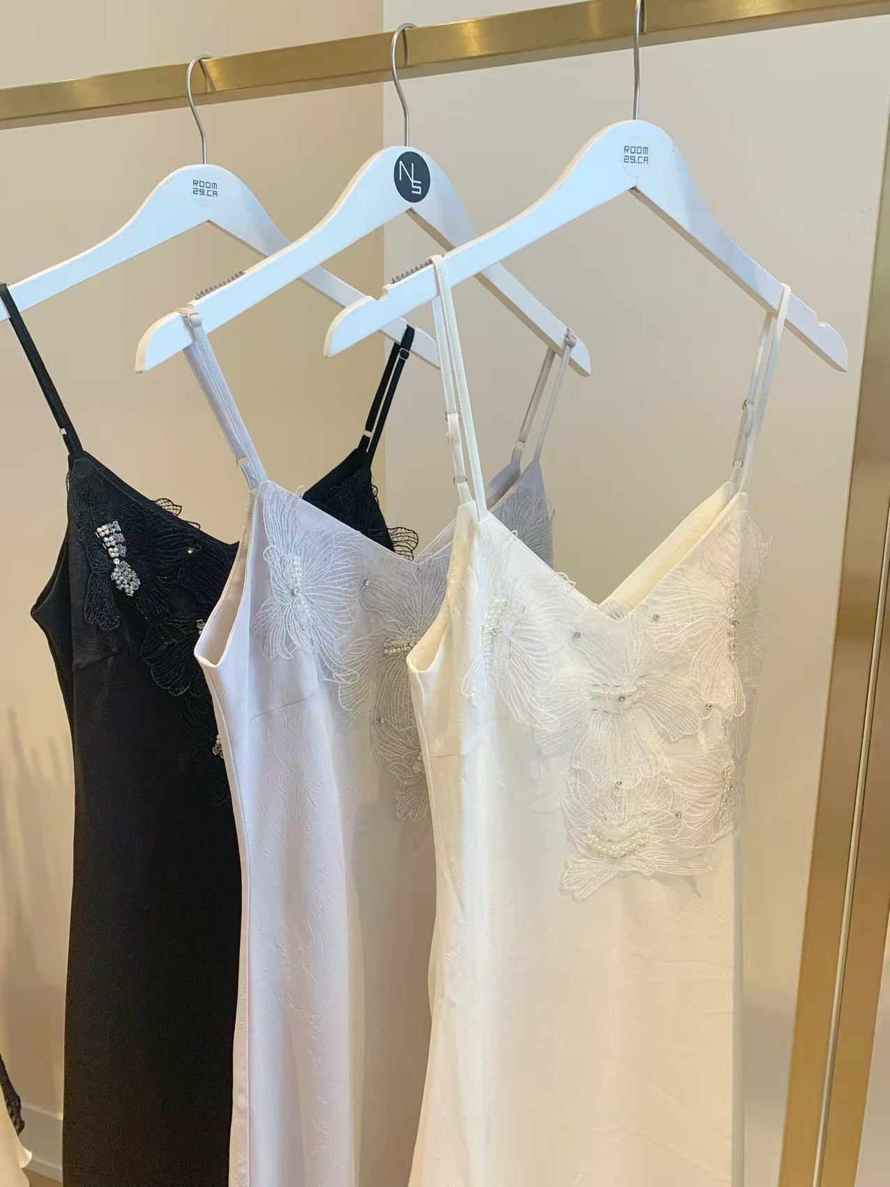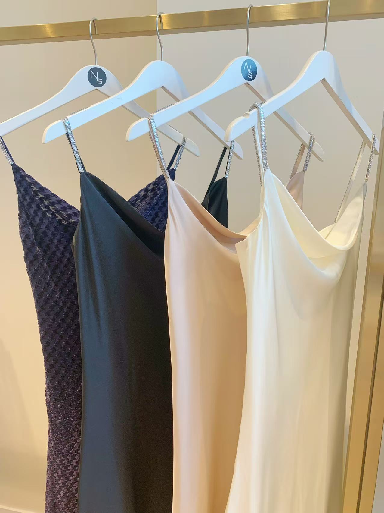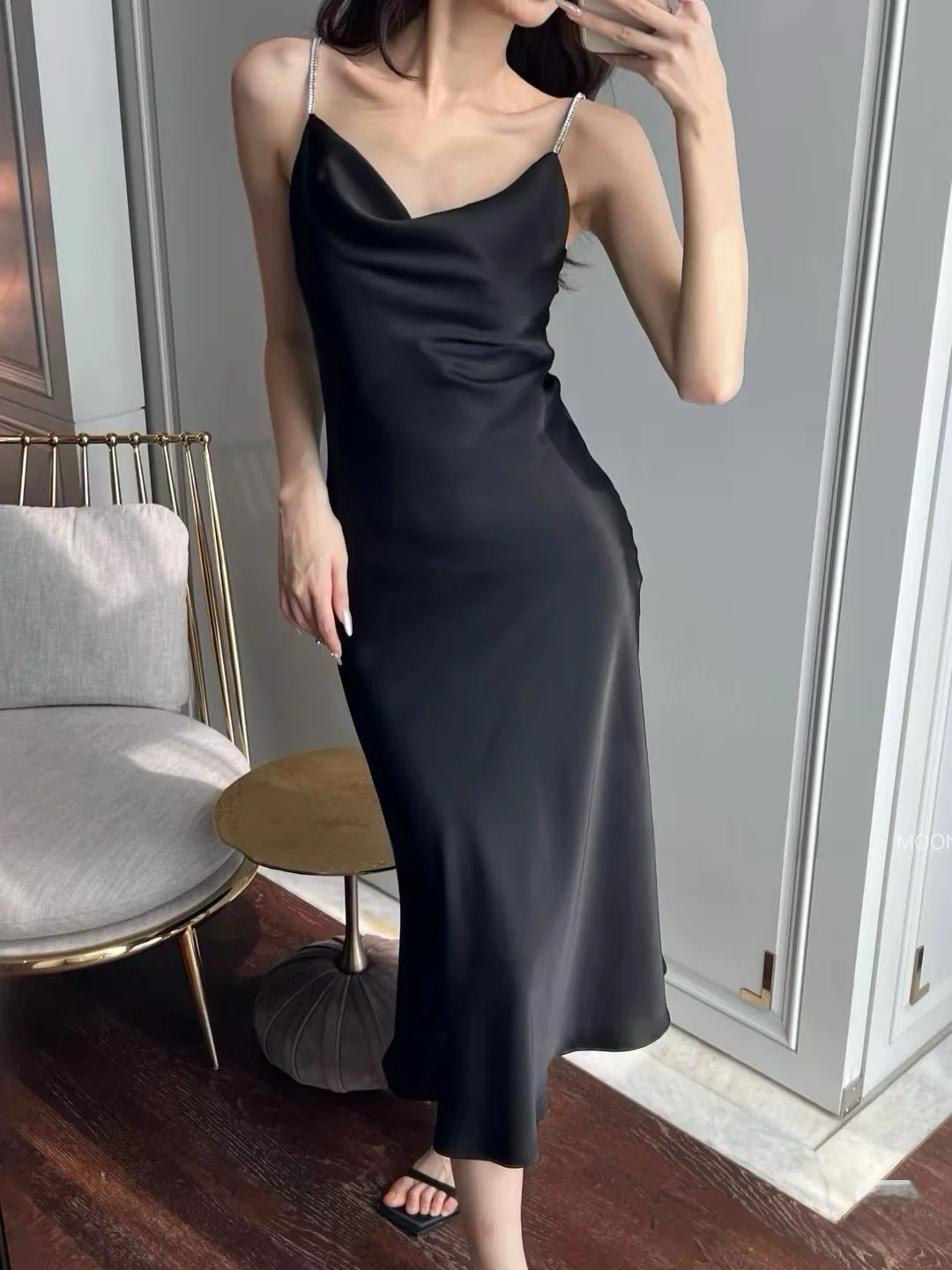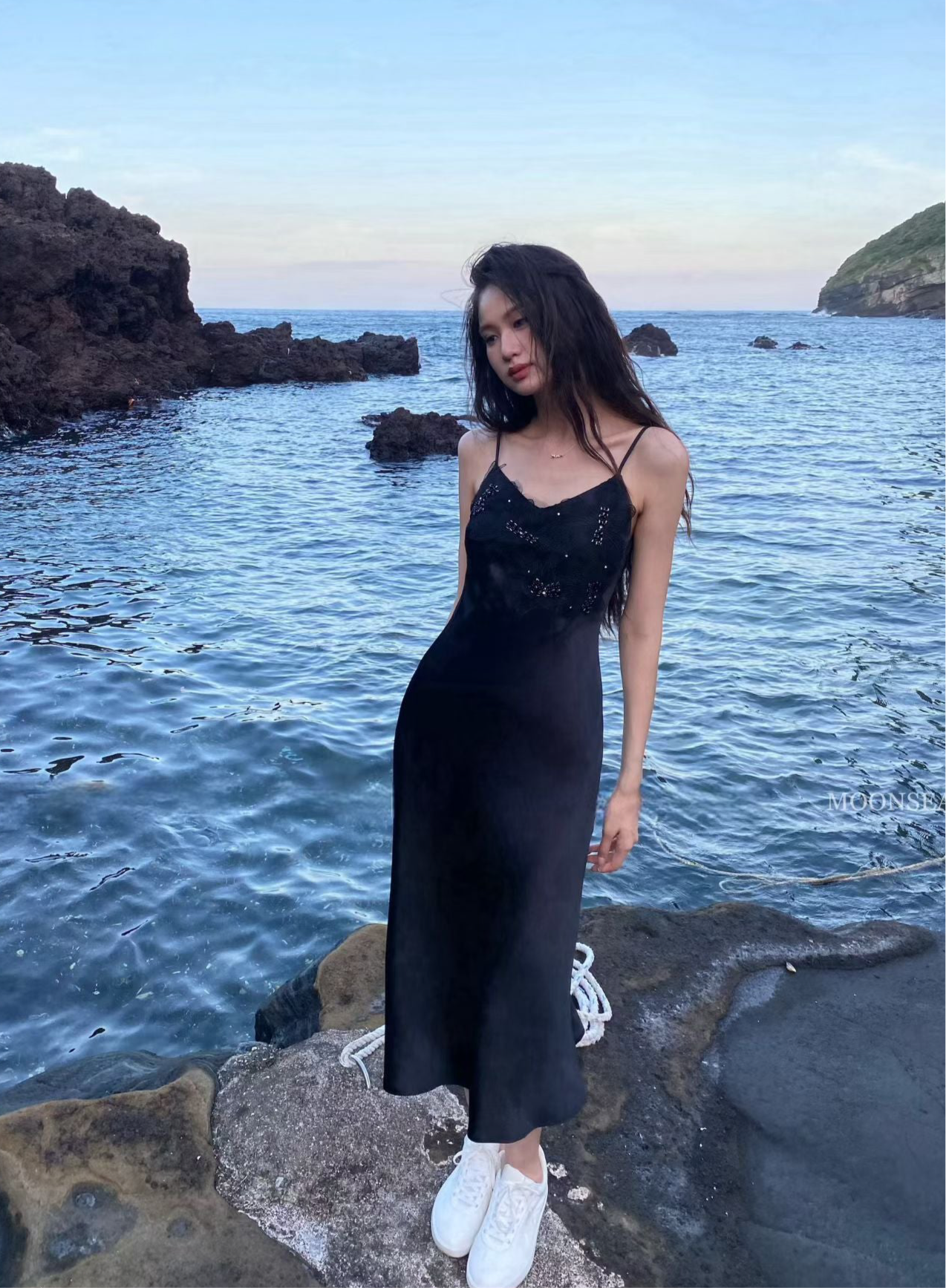 Moon&Sea Sparkle Strap Midi Dress -Black/White/Light Pink