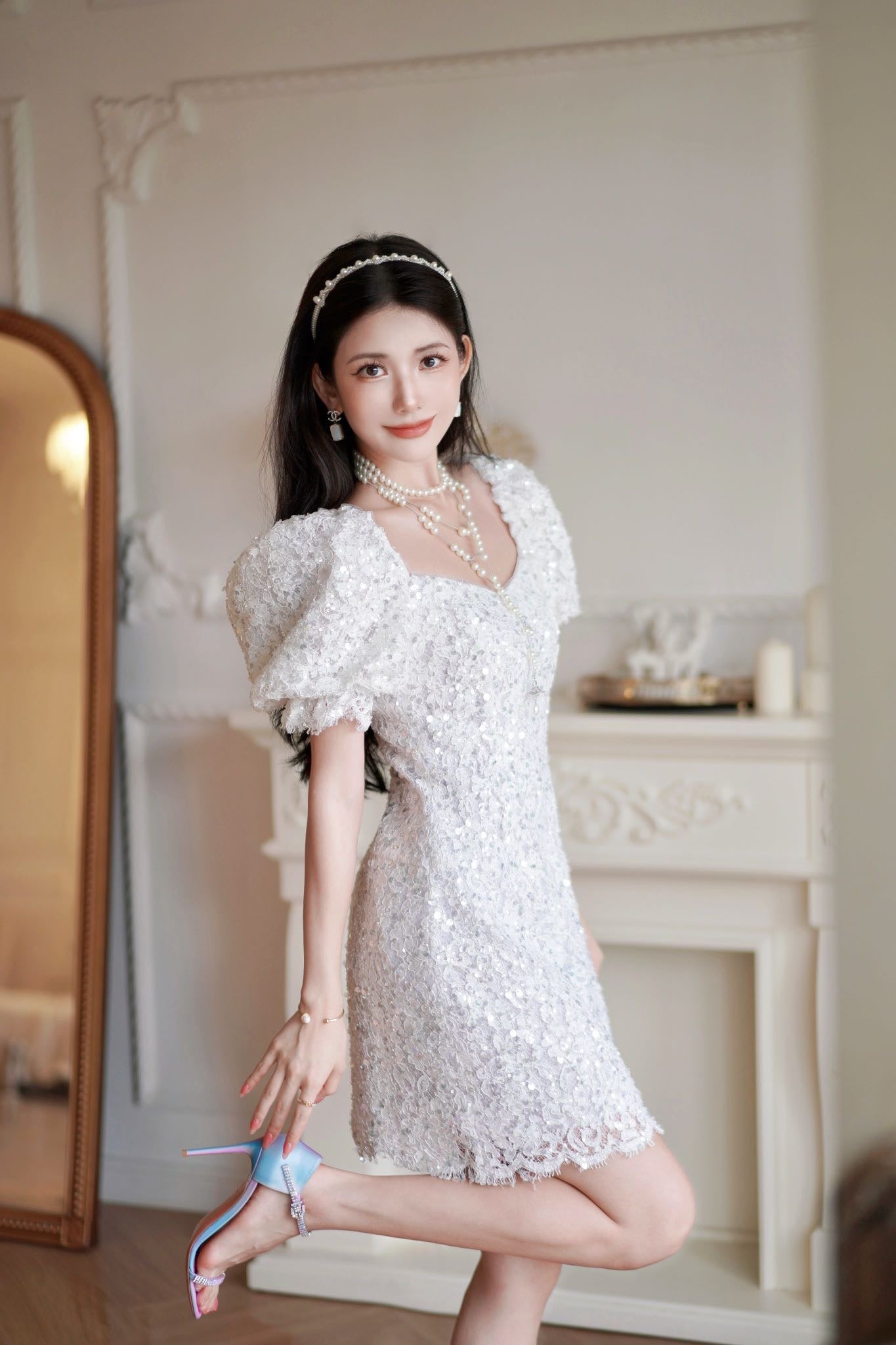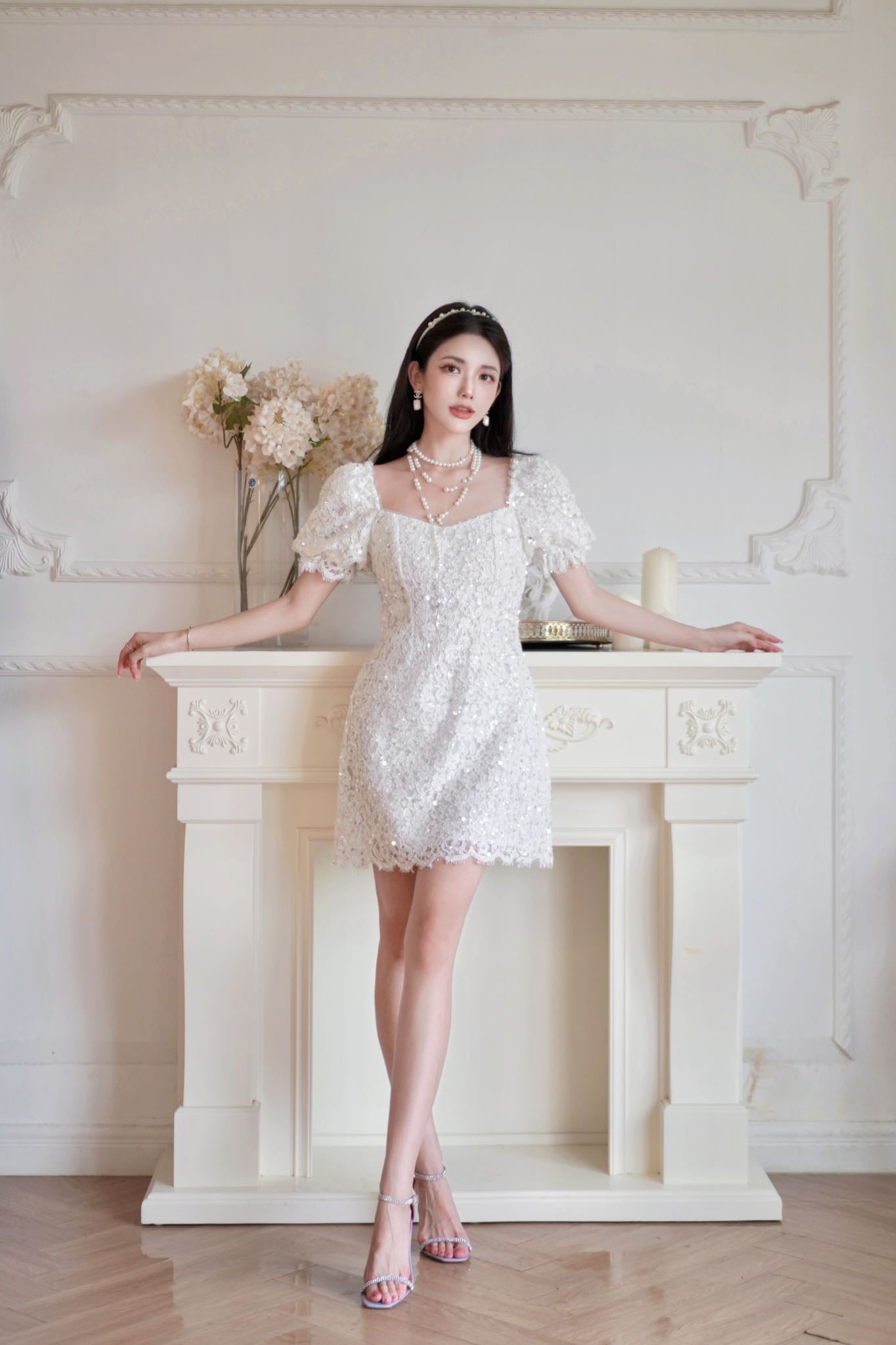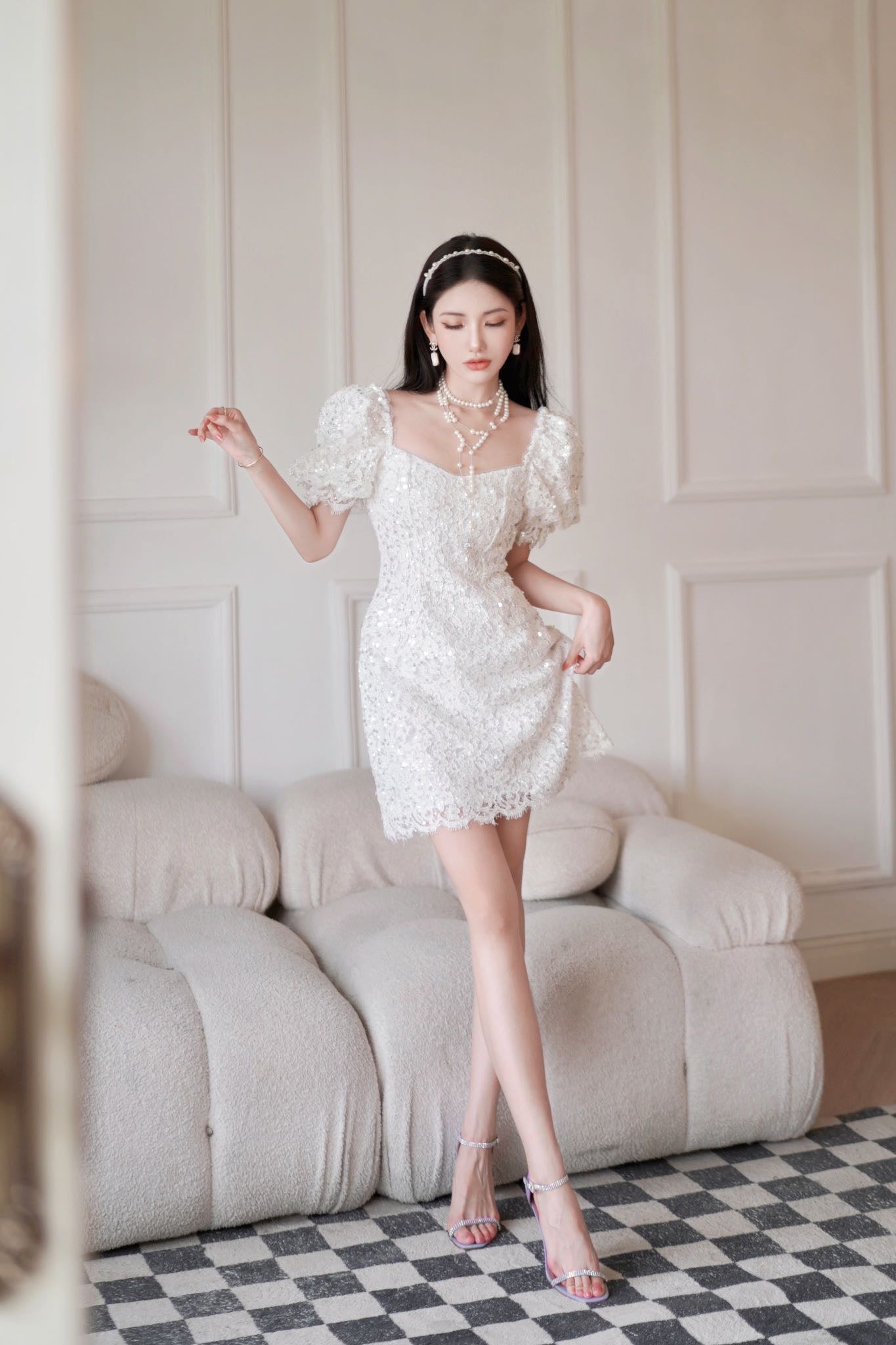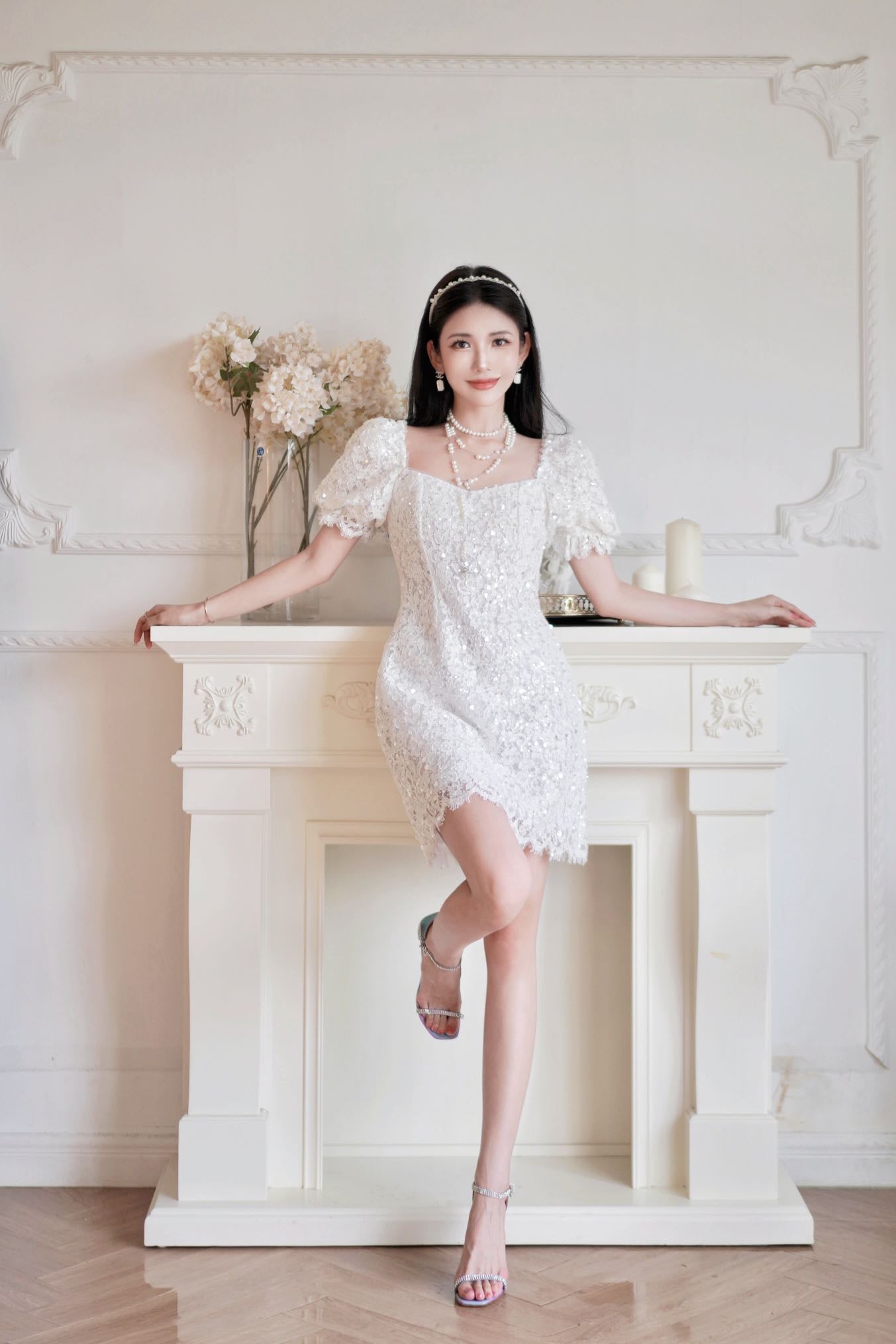 June Eleven Sequin Lace Puff Mini Dress
