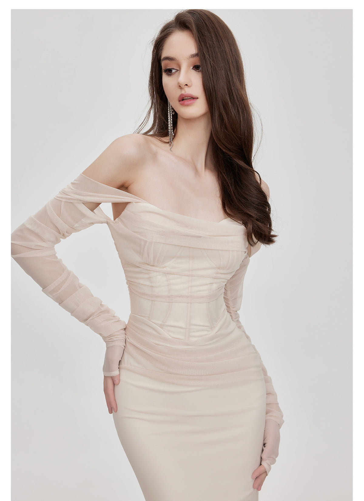 Sheer Luck Ariel Mesh Mermaid Maxi Dress Ivory
