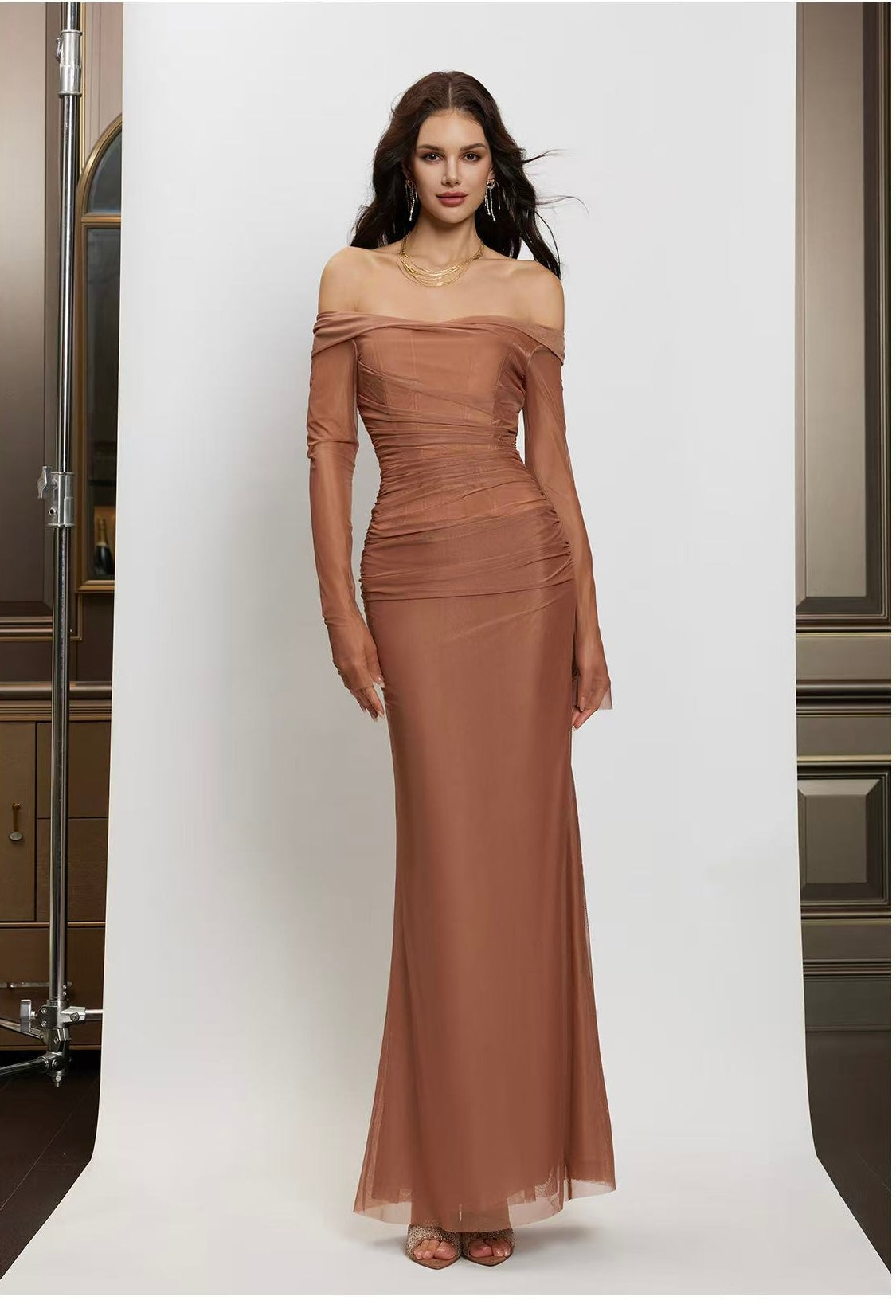 Sheer Luck Aurora Corset Midi Dress - Brown