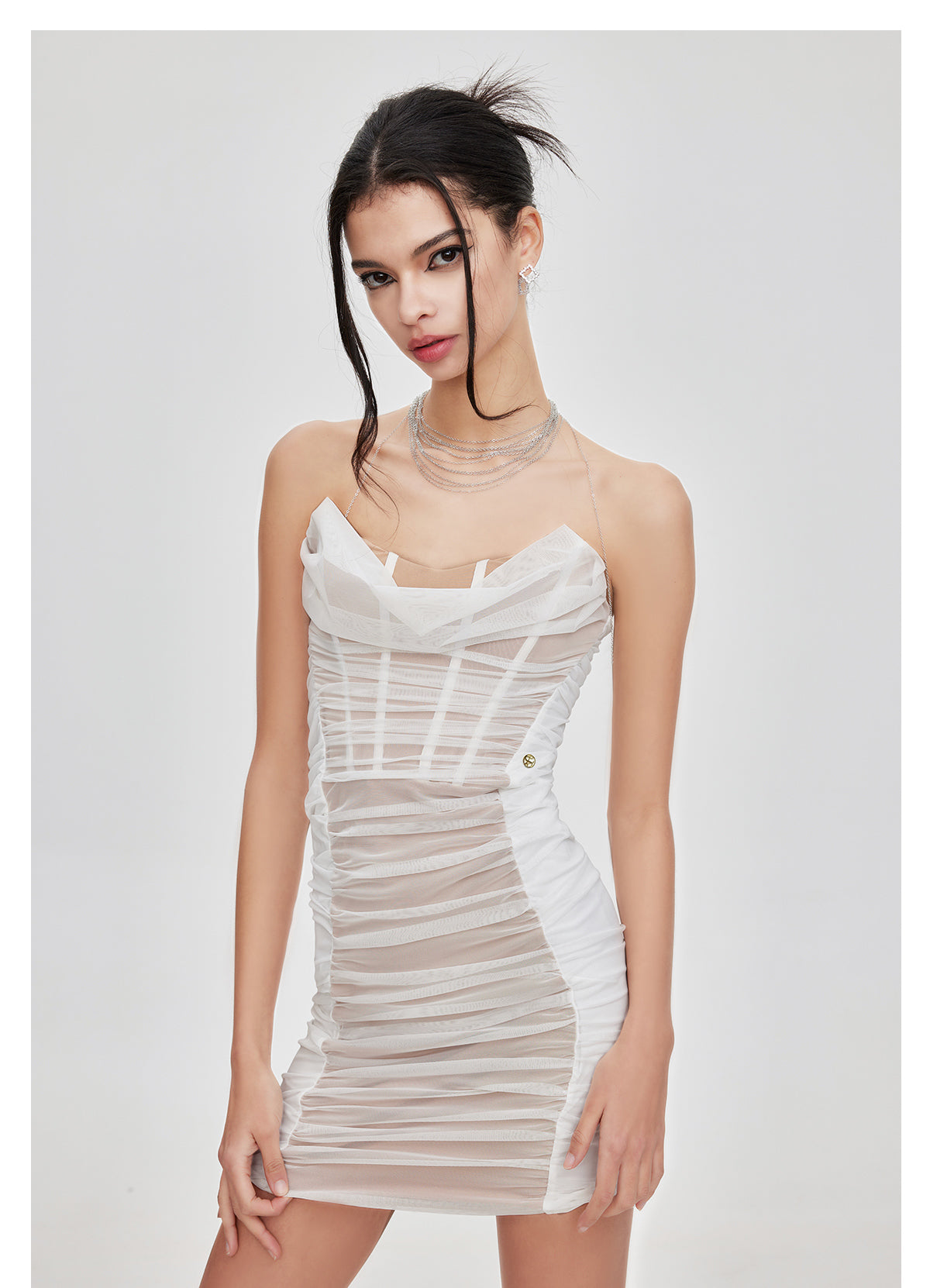 Sheer Luck Kali Mesh Corset Mini Dress White