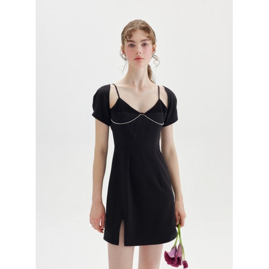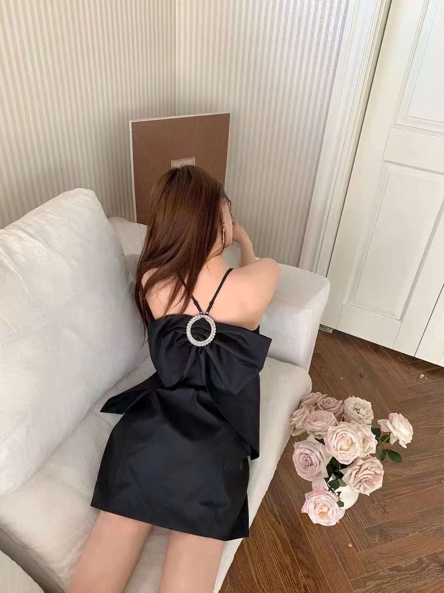 June Eleven Large Rhinestone Back-Bow Mini Dress