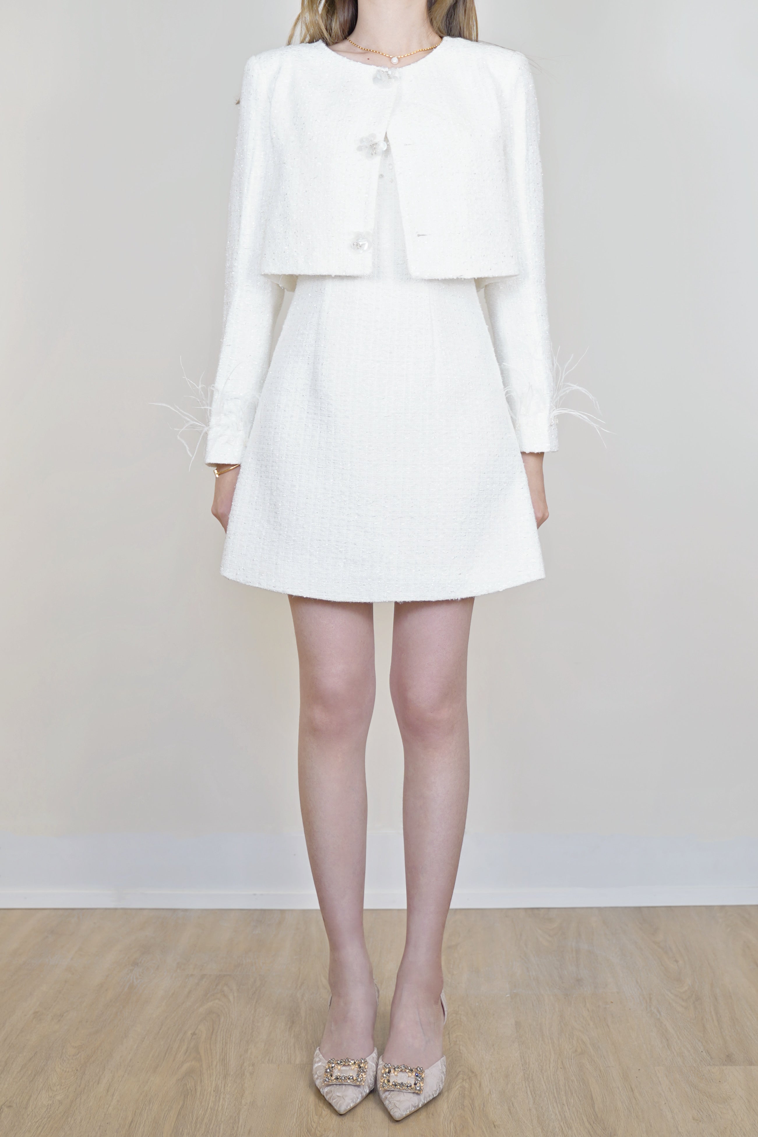 Moon&Sea Embellished Tweed Mini Dress White (Matching Set Available)